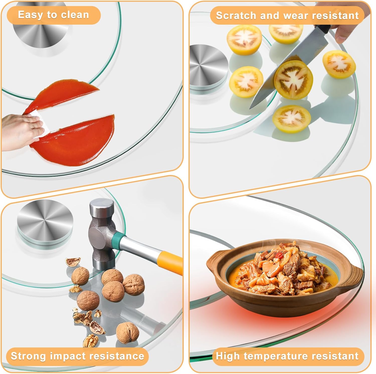 - HIGH-STRENGTH TEMPERED GLASS MATERIAL-Crafted from premium tempered glass, this dining table turntable offers exceptional heat and impact resistance. Its durable construction ensures long-lasting use, providing a safe and reliable experience for daily meals.