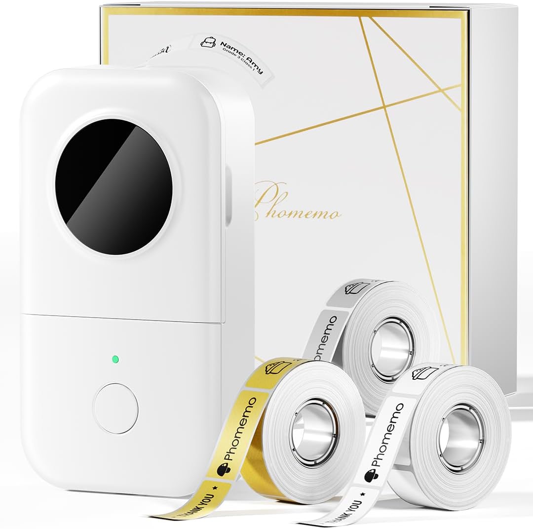 Phomemo D30 Label Maker with 3 Tapes, Bluetooth Wireless Mini Pocket Smartphone Label Maker Machine, Small Thermal Printer Rechargeable Labeler for Home Office Labeler, Works with Tablet, Phones