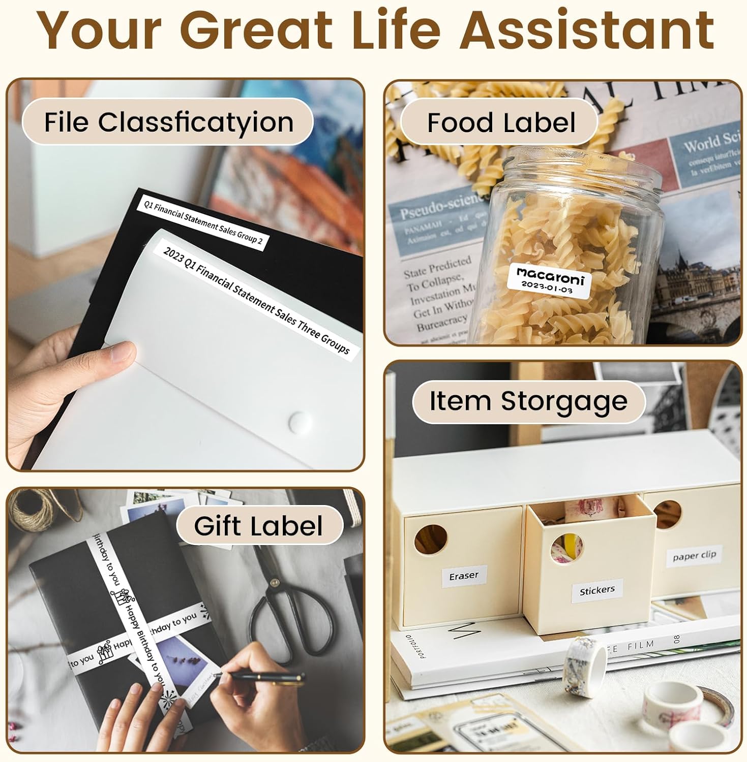 - Item Include: D30 Label Laker with 3 Tapes - 1 White Tape + 1 Gold Tape and 1 Clear Tape; The Phomemo D30 Bluetooth label maker supports continuous label tapes and labels in fixed length.