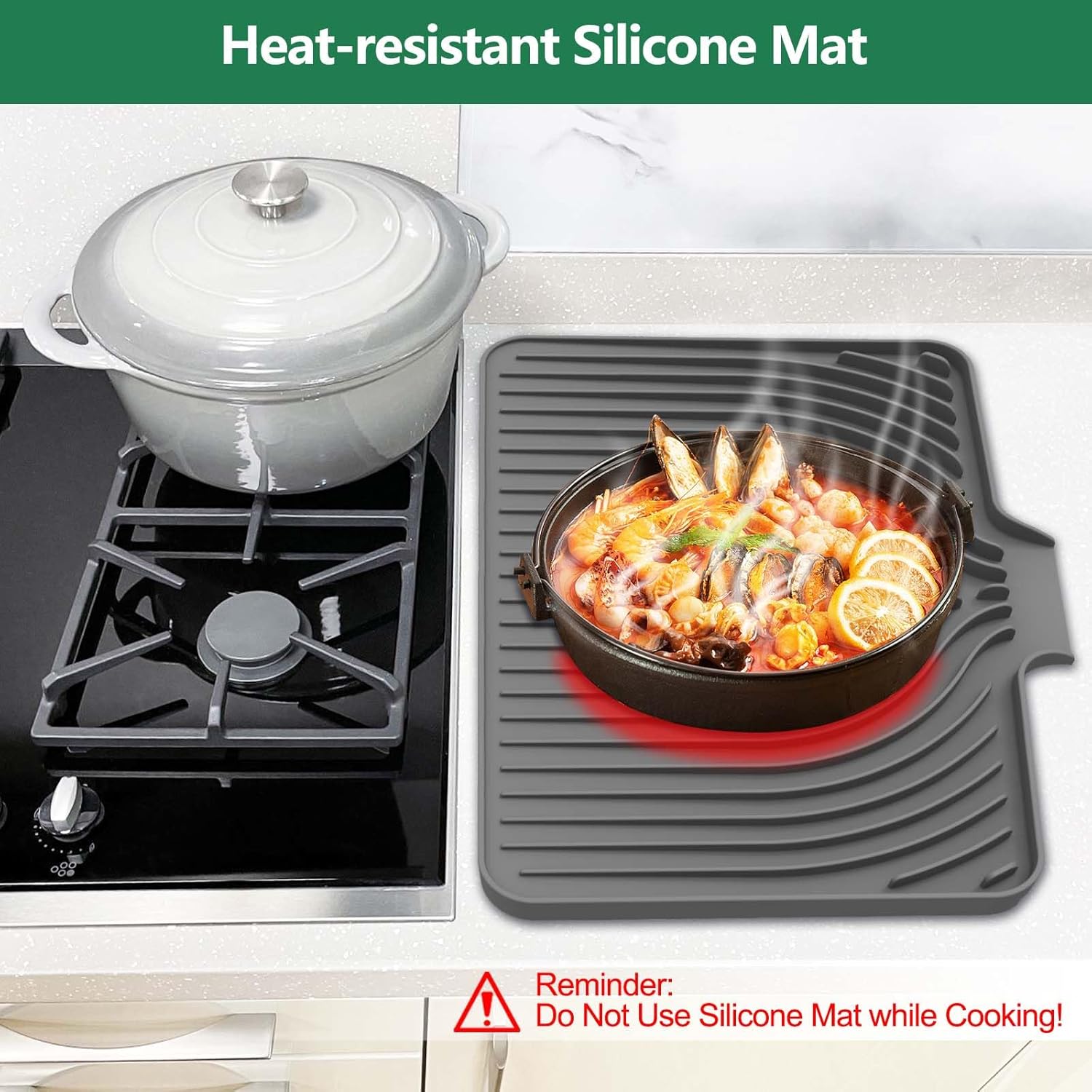 - Anti-Slip and Heat-Resistant: Dish mat drying kitchen mat has a great anti-slip design, keeping dishes, fruits, veggies and glassware steady. Besides, it's heat-resistant up to 450Β°F (230Β°C), safeguarding countertops well from hot pots and appliances