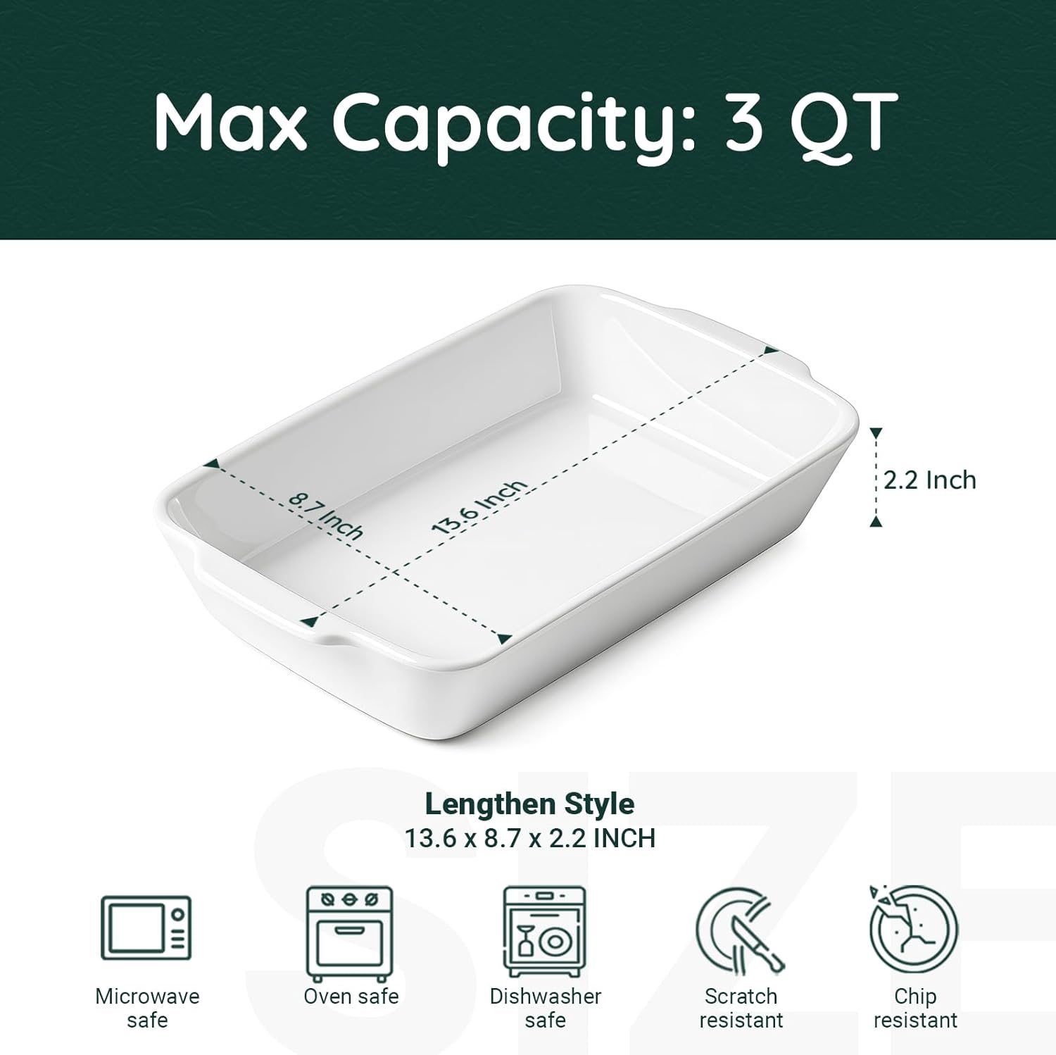Casserole Dish with Roasting Racks, 3 QT Baking Dish with Handles, White Bakeware, Ceramic Baking Pan, Microwave Oven Safe, Dinner, Wedding (13.6"*8.7")