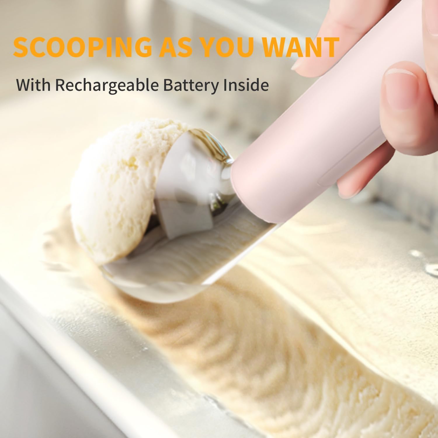 Heated Ice Cream Scoop, Rechargeable Electric Scooper for Hard IceCream, Self Warming Spoon Max to 158℉, Rust-Proof, anti freeze handle, Easy to Clean