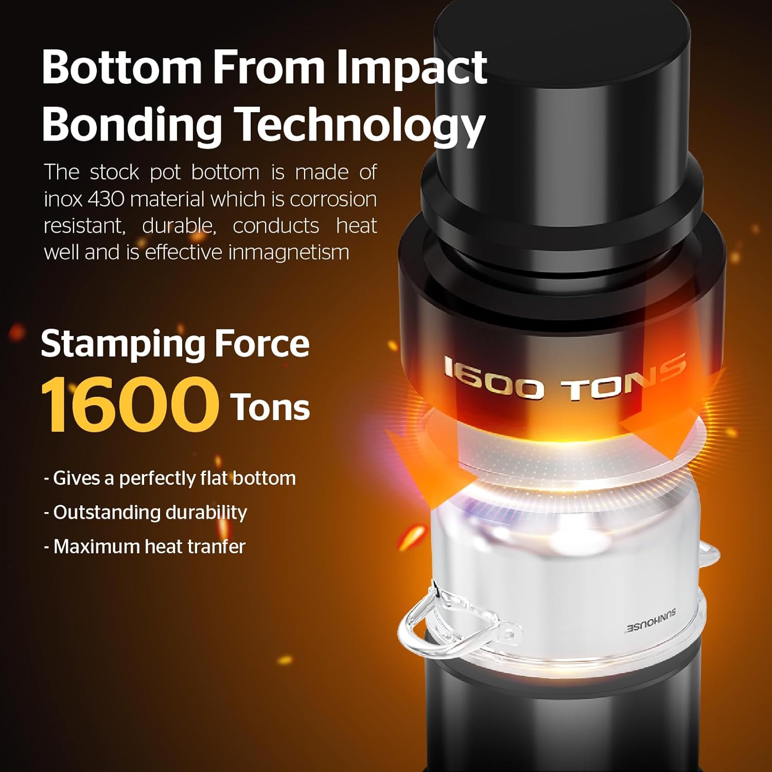 SUNHOUSE 8 Quart Stock Pot with Lid - 3-Ply Bottom Stainless Steel Pasta Cooking Canning Dutch Oven Pot - Induction Compatible for All Stovetops - Dishwasher Safe & Oven Safe