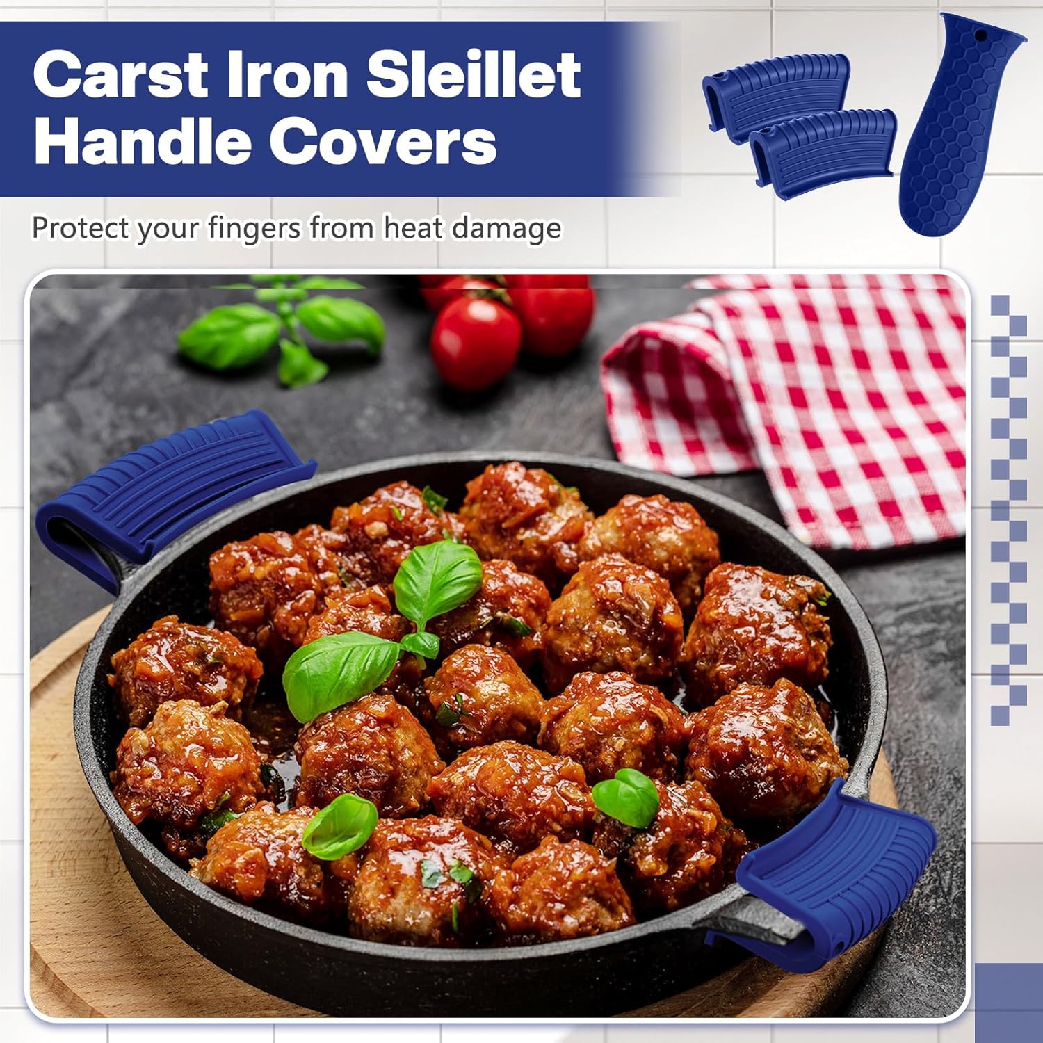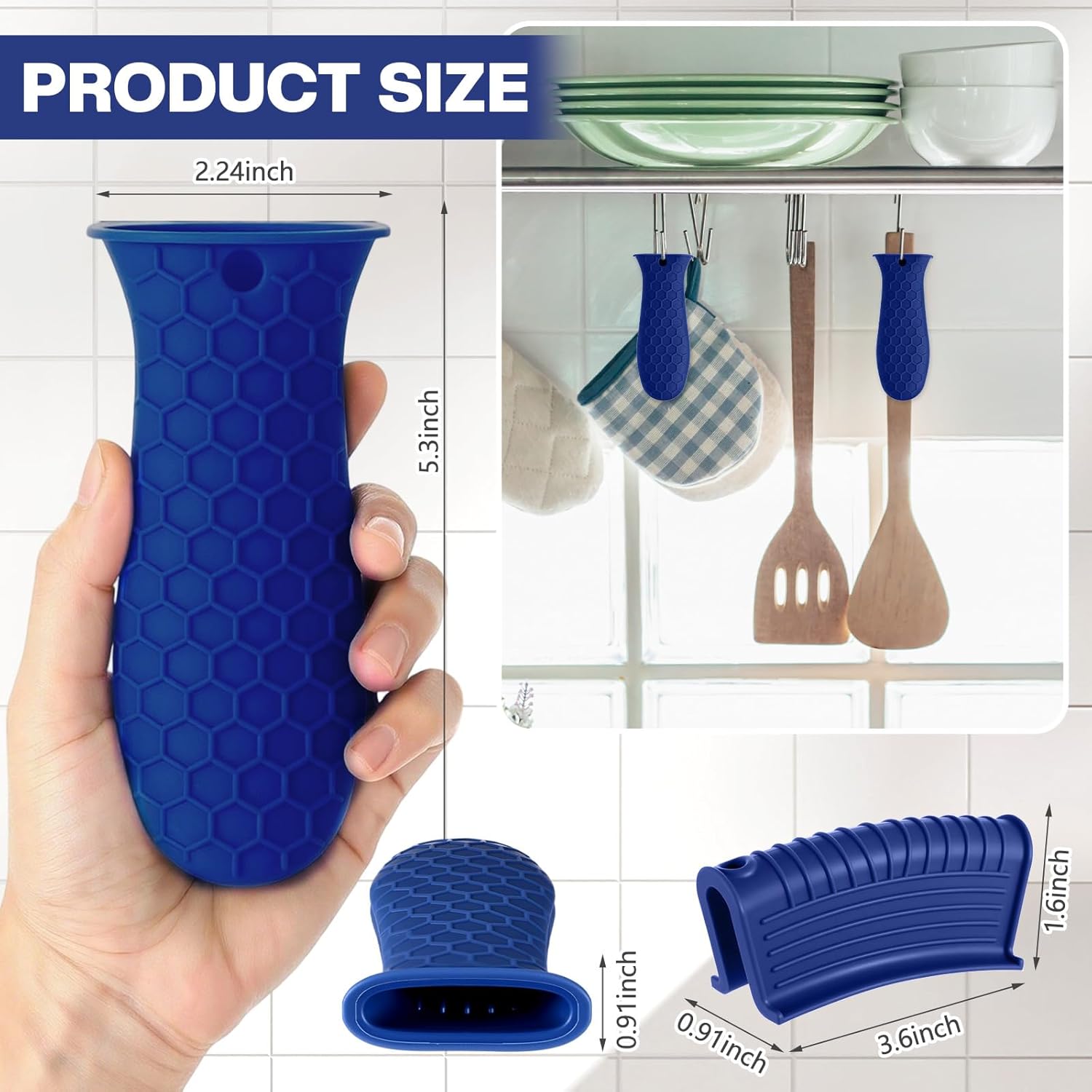 Patelai 8 Pcs Silicone Pot Holders Set Cast Iron Handle Cover Heat Resistant Pot Handle Covers Potholder Non Slip Reusable Pan Sleeve for Frying Pan Kitchen Supplies (Navy Blue)