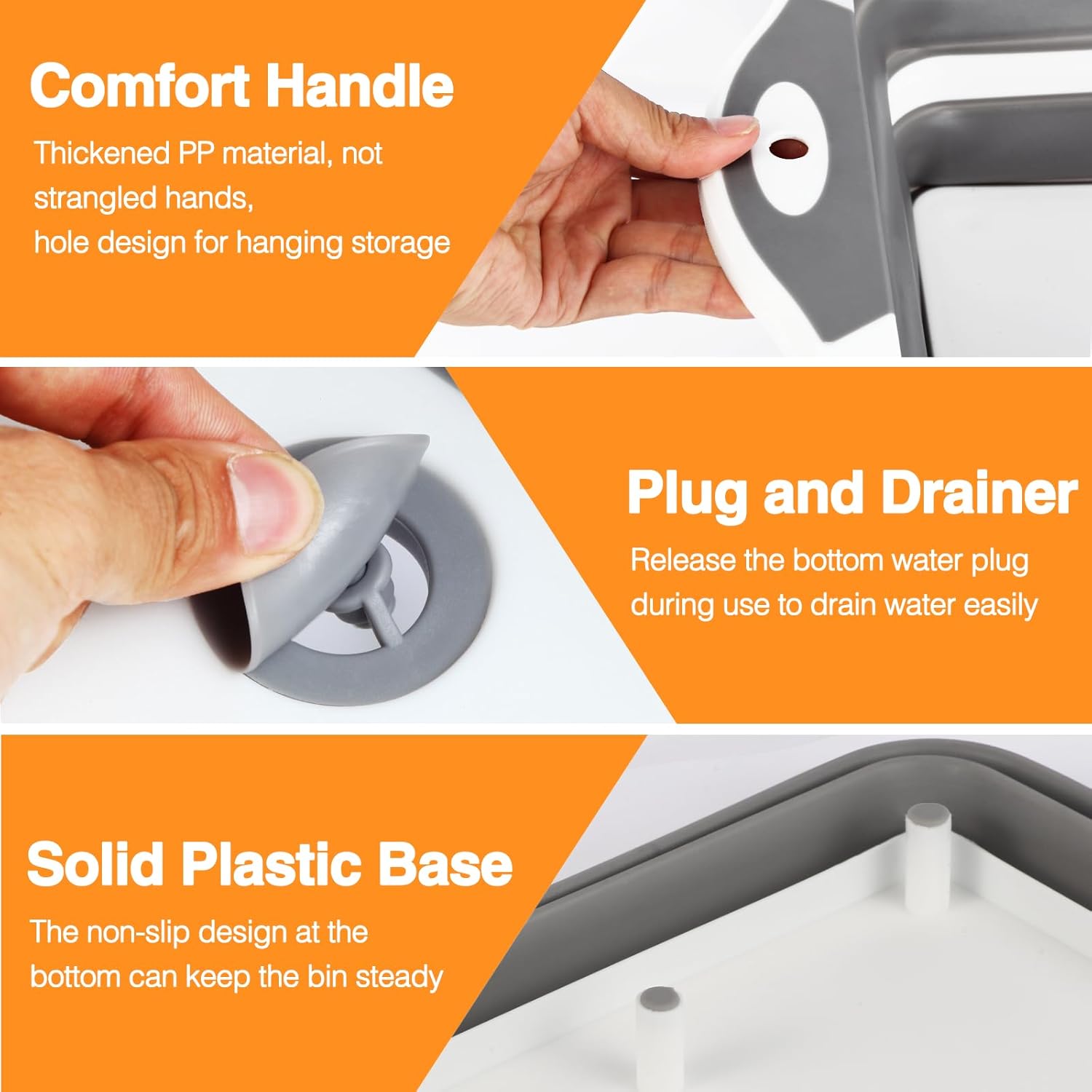 - Versatile for Indoor & Outdoor Use: The foldable dish tub offers functions as cutting board for fruits, veggies, and meats, and a convenient washing basket for produce. Use this collapsible sink at home or take it on outdoor adventures. It’s ideal as a camping sink, portable washing basin, or even a fishing bucket. Perfect for washing dishes, rinsing food, or soaking laundry, it’s a practical tool for both household and outdoor needs.