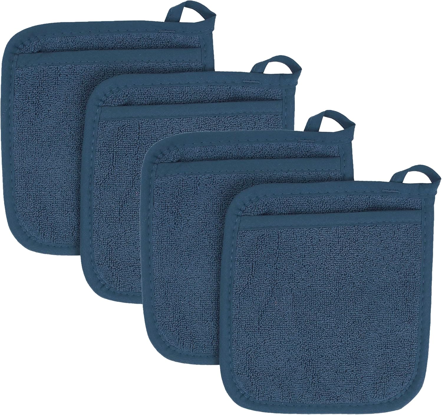 RITZ Terry Pocket Mitt & Hot Pad: Unparalleled Heat Resistant, Durable 100% Cotton,Ergonomically Designed for Optimal Grip, Easy-Care Machine Washable 4-Pack, Midnight