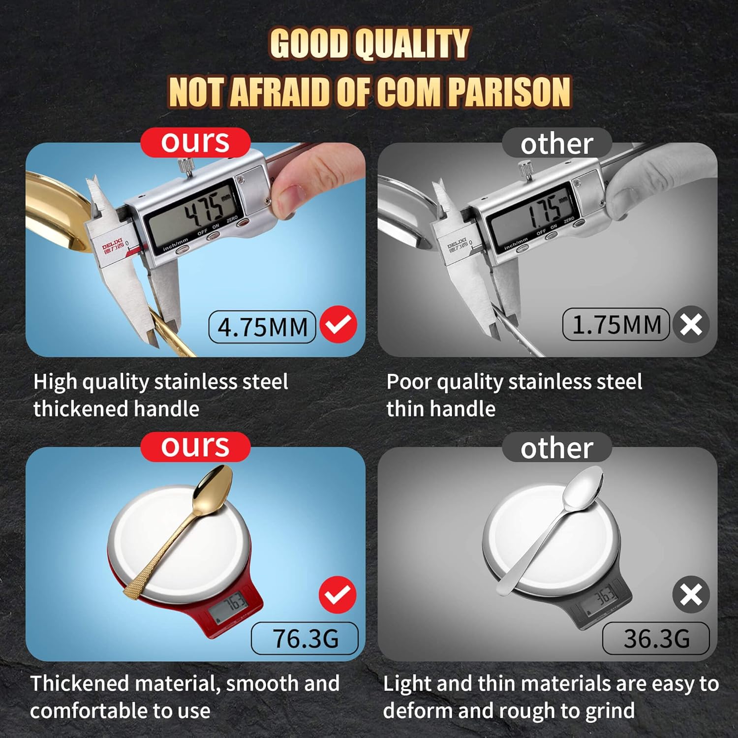 - Premium Stainless Steel Design : Our cutlery set uses high-quality stainless steel, which is not only strong, durable but also easy to clean. The polished surface makes your dining experience more enjoyable