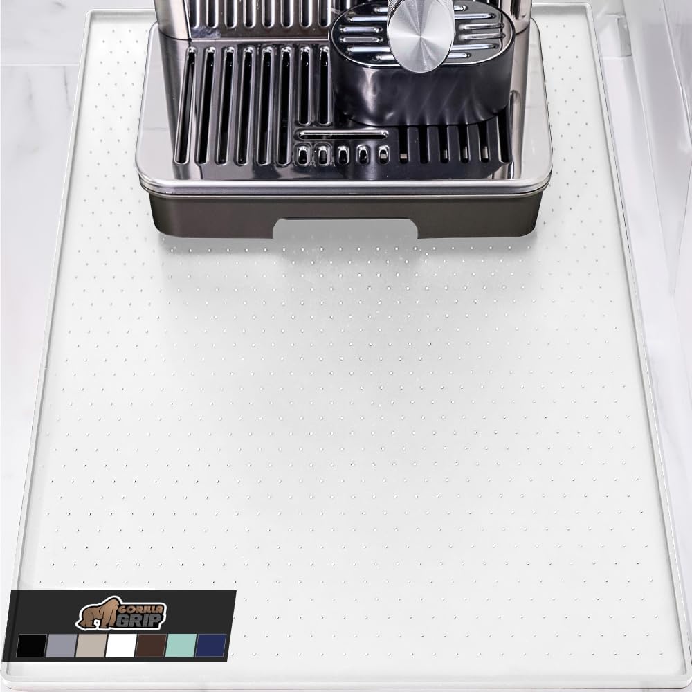 GORILLA GRIP Silicone Coffee Mat, 18x28, Espresso Drink Bar Station Accessories, Waterproof Heat-Resistant Dish Drying Mats, Stay in Place on Kitchen Counter, Home Kitchen Decor Essentials, White