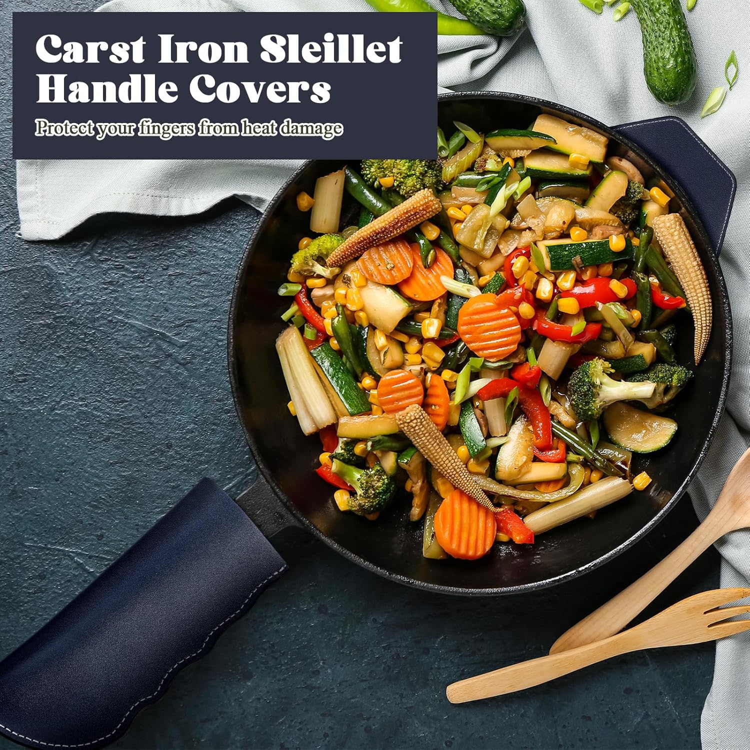 - Widely Applicable: our handle covers fit most cast iron pots, pans and skillets ideally; They can fit the handles of cast iron skillets and other cookware tightly, making the handle covers comfortable