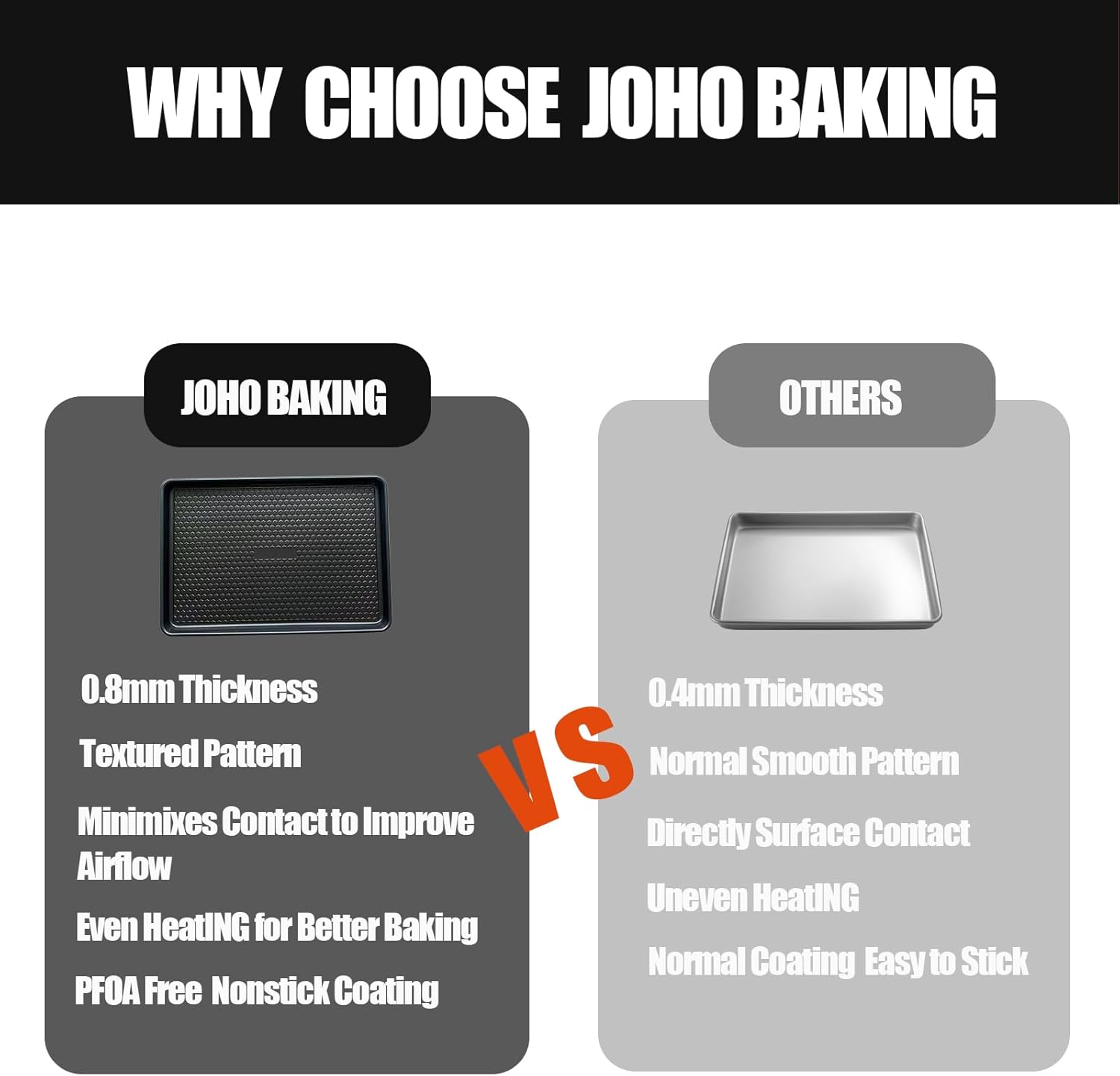 - Heavy Duty 0.8mm Carbon Steel Baking Sheets – Commercial-grade carbon steel cookie sheets (2 pack) resist warping & rust, 2X thicker than standard baking pans. Withstands 450°F for even roasting, baking, and sheet pan dinners.