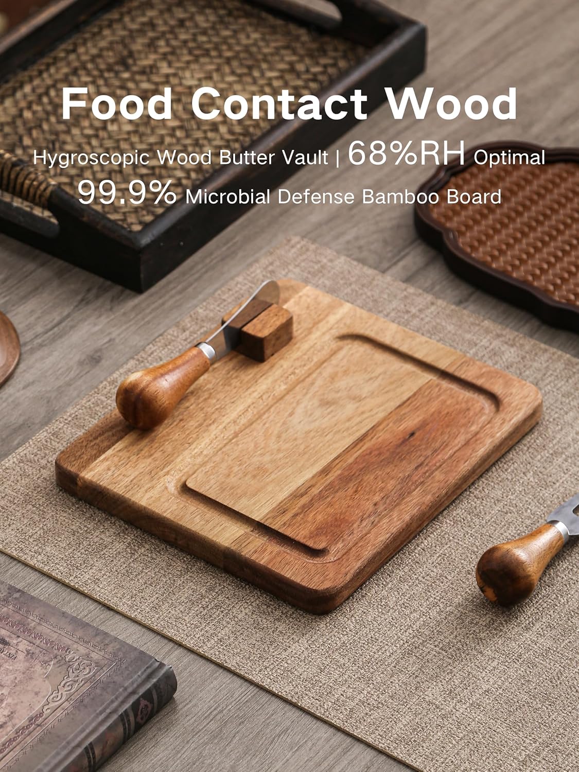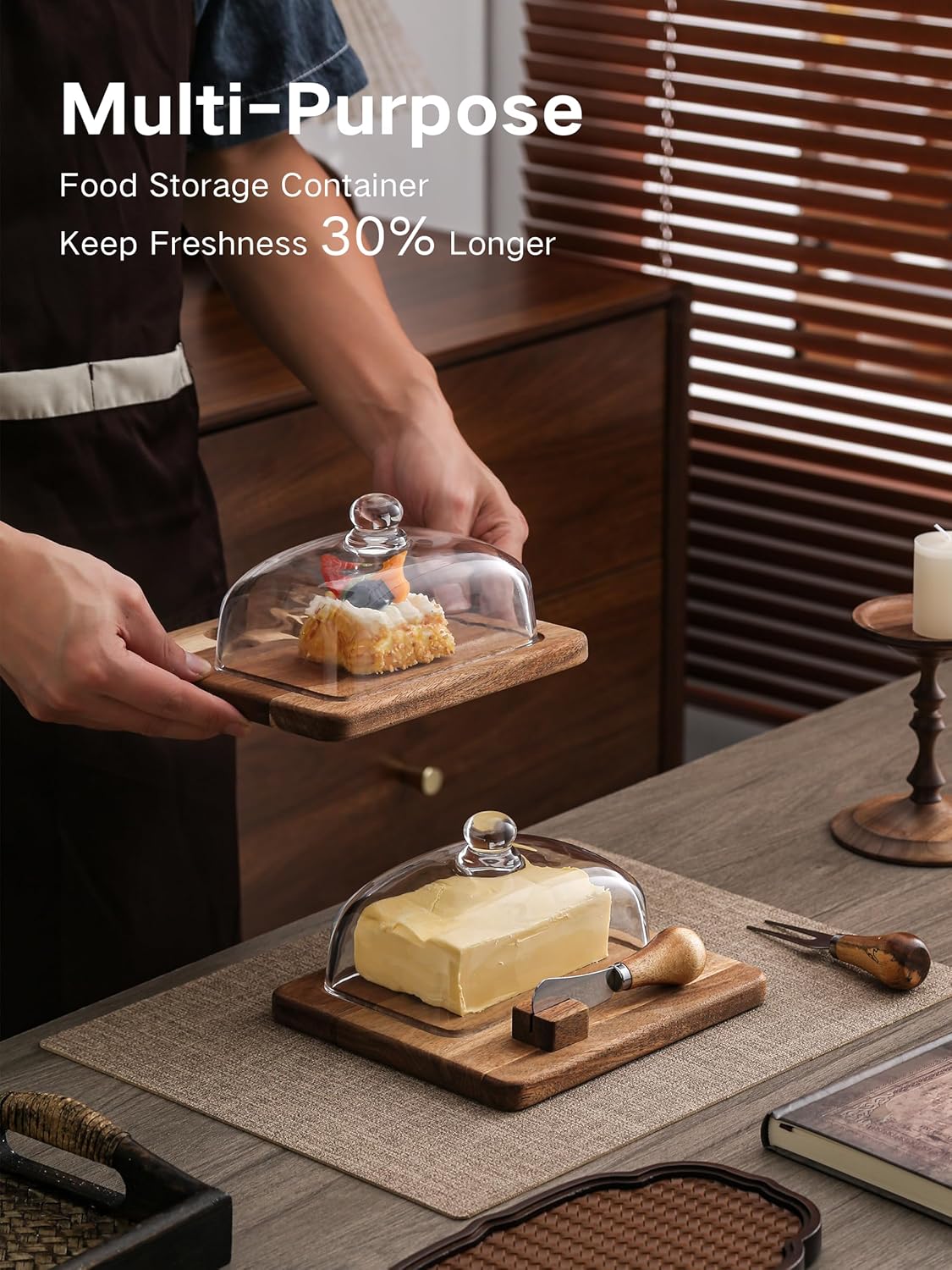 - 【BUTTER DISH WITH LID UPDATED VERSION】The butter knife rests elegantly on your cutting board, designed for both visual appeal and hassle-free everyday use.Don't worry about not having a butter knife when you want to cut some butter.The upgraded lid is more durable than the previous lids.This butter dish with lid is perfect for use at the dining table and perfect for home decor.