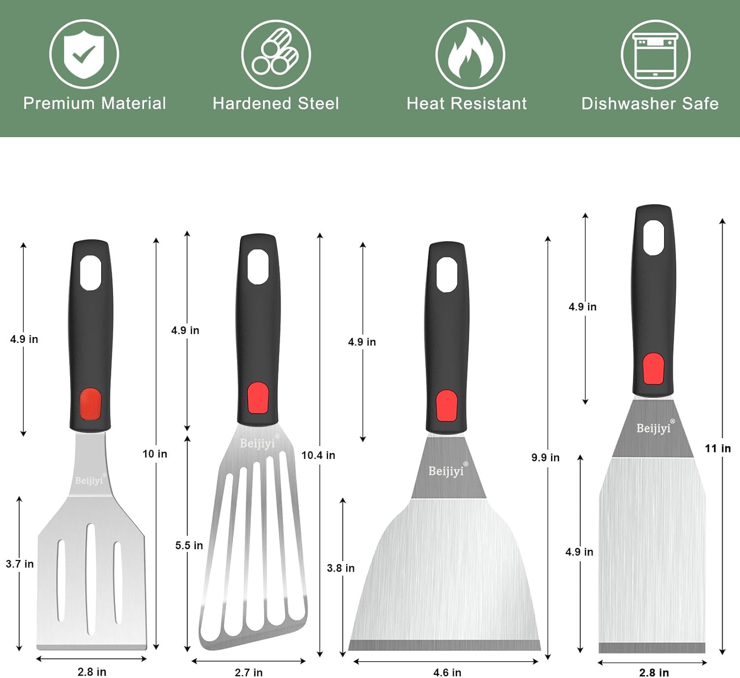- Comfortable & Heat Resistant Handle: The stainless steel spatula set has a silicone handle, which is heat-resistant up to 600Β°F, effectively insulates to keep your hands cool. The contoured handle provides a comfortable, non-slip grip