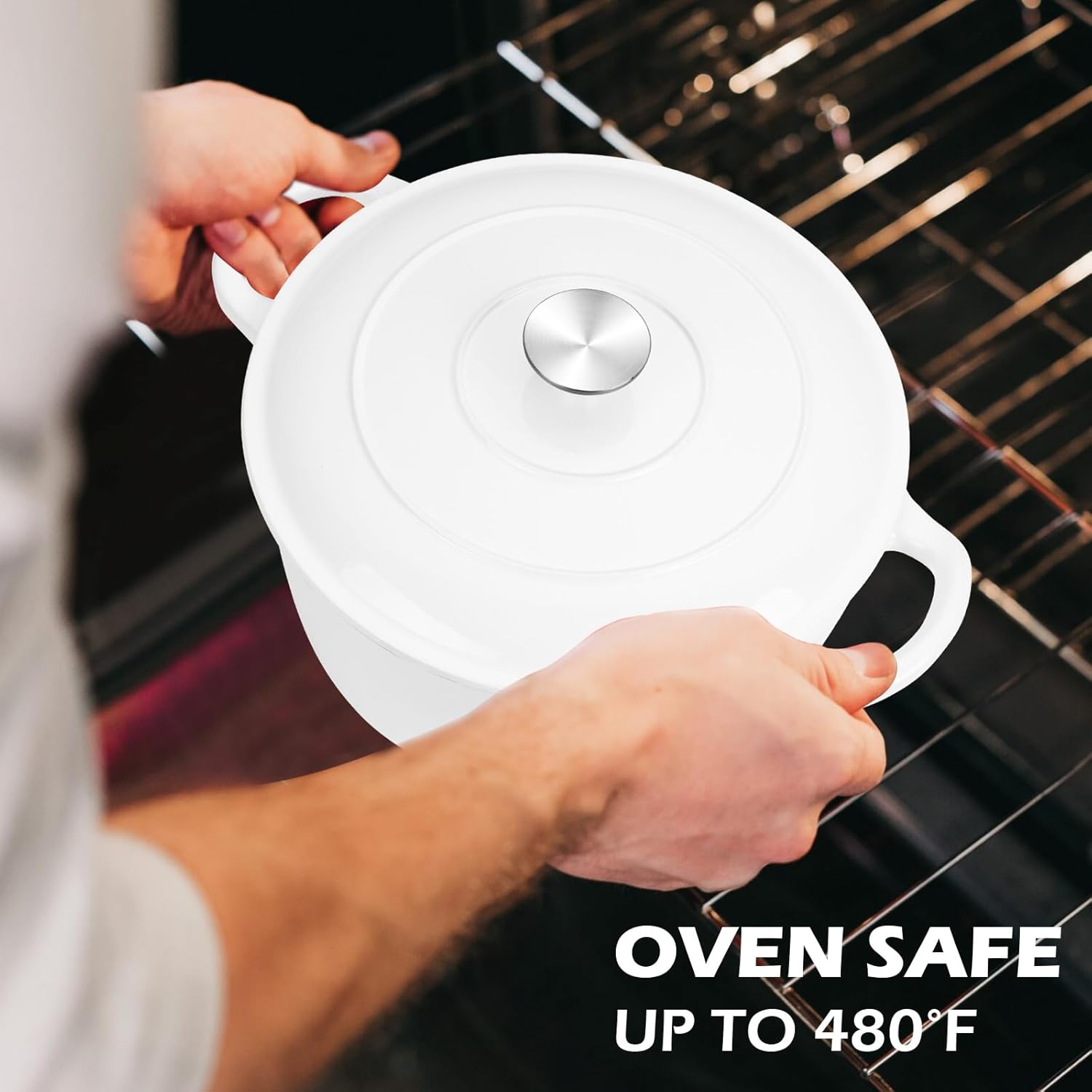 - Versatile Kitchen Essential, the 3 quart Dutch oven capacity serves 1-2 people, from simmering soups to baking bread and making one-pot meals, meets all the needs of daily stewing. It transitions effortlessly from stovetop to oven, making meal prep a breeze, suitable for gas, electric, ceramic, induction stovetops