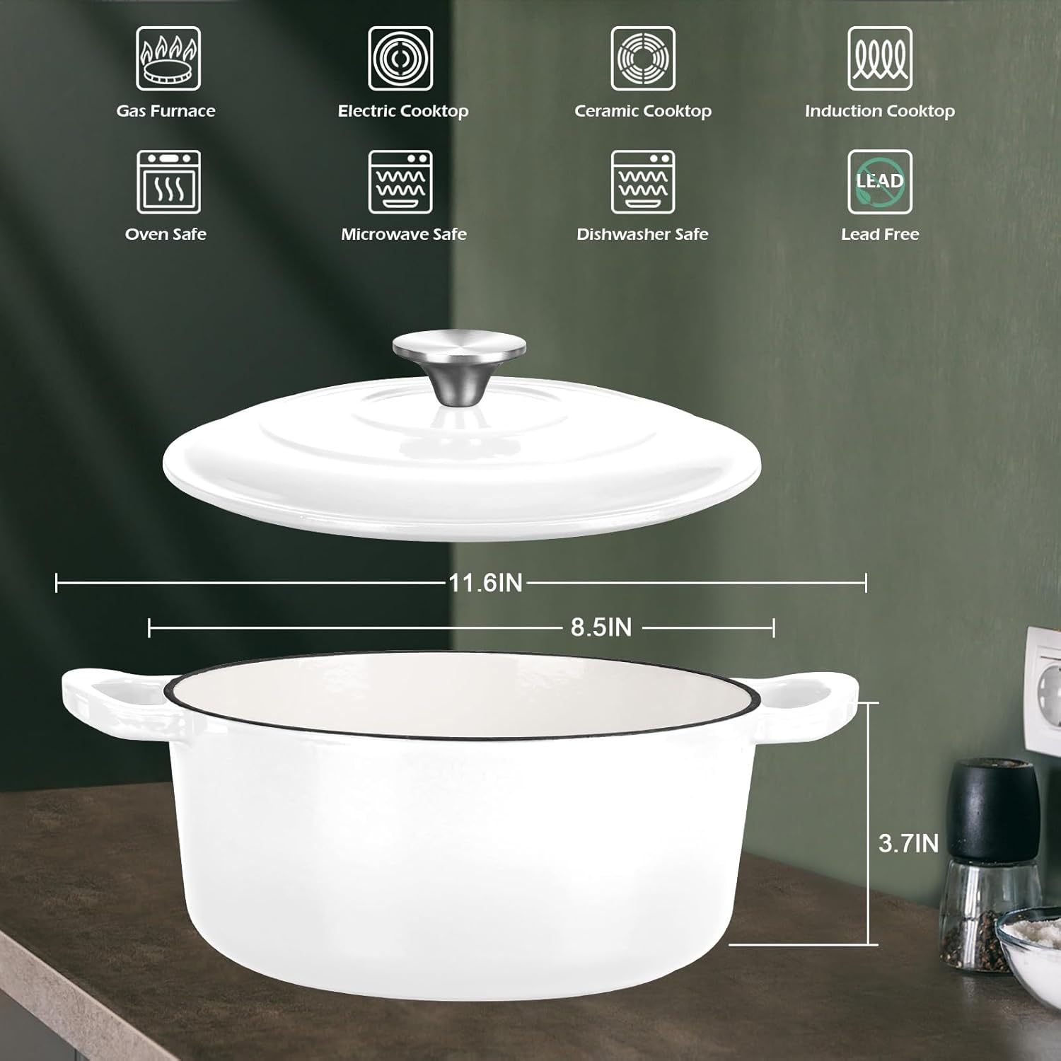 3QT Dutch Oven Pot with Lid, Leonyo 3 Quart Enameled Cast Iron Dutch Oven for Sourdough Bread Baking, Heavy Duty Cookware for Braising, Stews, Roasting, White