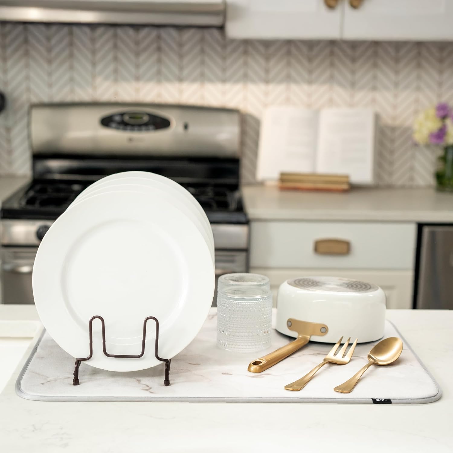 - Dish drying mats for kitchen counter are reusable, machine washable, and easy to store for kitchen organization; durable construction will not chip or break like a stone dish drying mat for kitchen