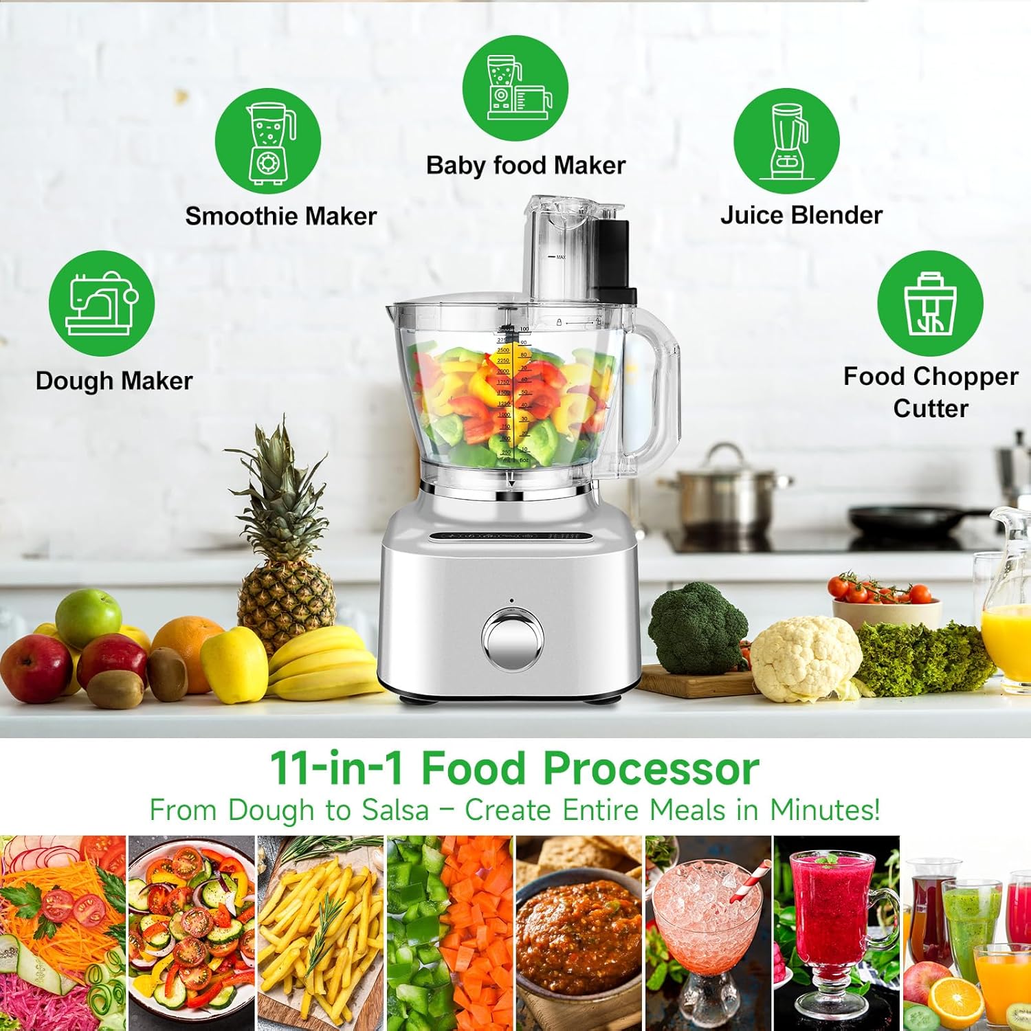 - 🔄 【11-in-1 Versatility – Do It All in Seconds!】 Tired of juggling multiple kitchen gadgets? This 16-cup food processor chops, slices, shreds, kneads, blends, and more—so you can prep meals in half the time! Perfect for busy weeknights or weekend feasts, it’s the ultimate multifunctional food processor for smoothies, dough, veggies, and even soups. One machine, endless possibilities!