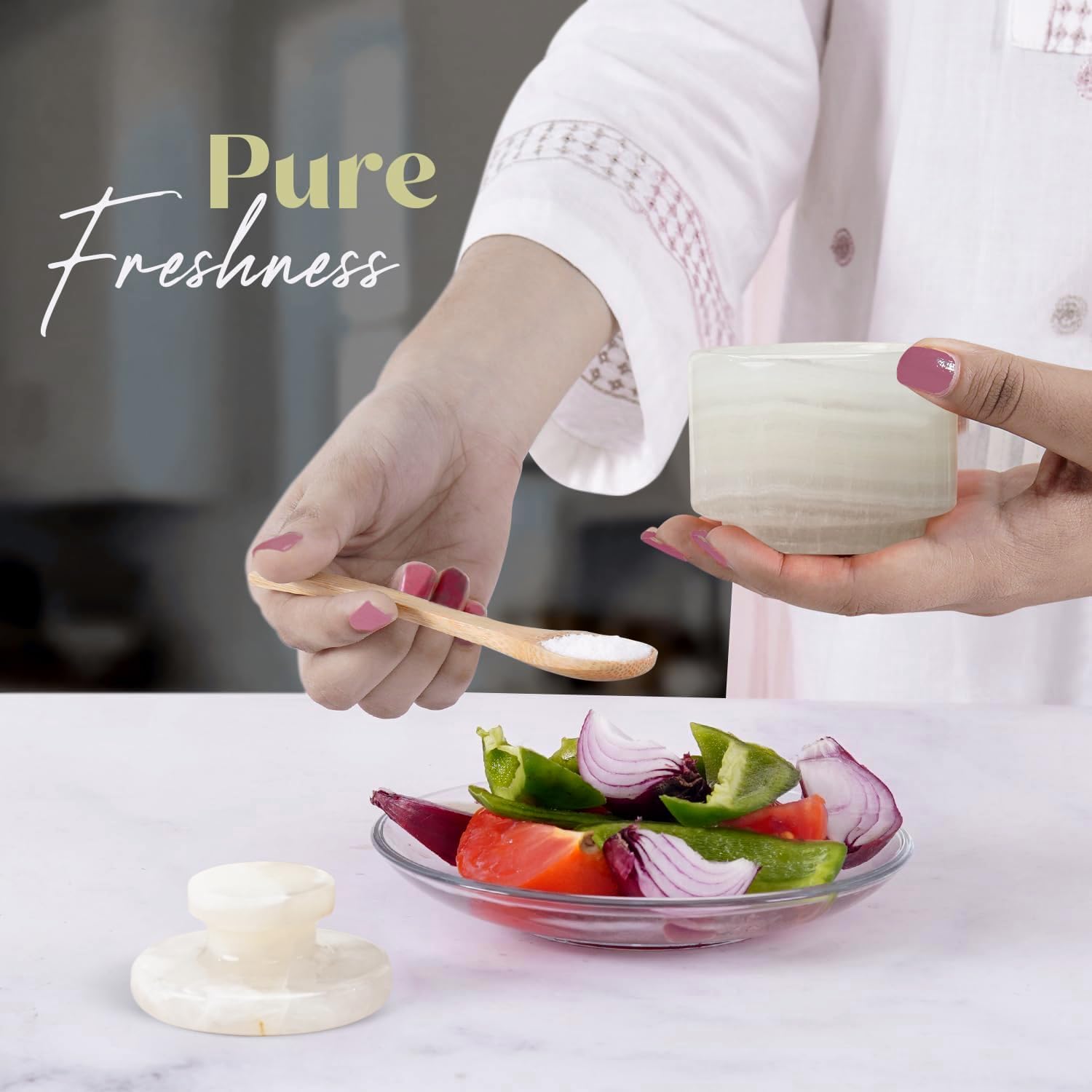 Marble Salt Cellar 3 Inch White Onyx Salt Holder With Lid for Spice Jar & Stone Salt Container, Modern Sugar Bowl