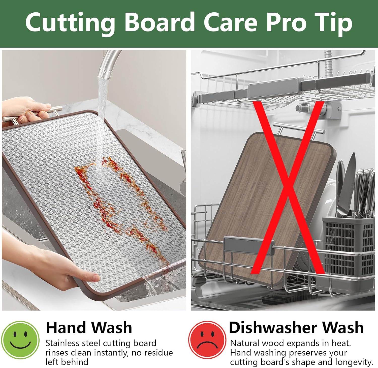 Stainless Steel Cutting Board Wood Double Sided Chopping Cutting Boards for Kitchen - 2 in 1 Ebony Metal with Handle Scratch Resistant Raw Meat Vegetable Fruit Cooking Gift 17.7''×11.6''×1''(Upgraded)