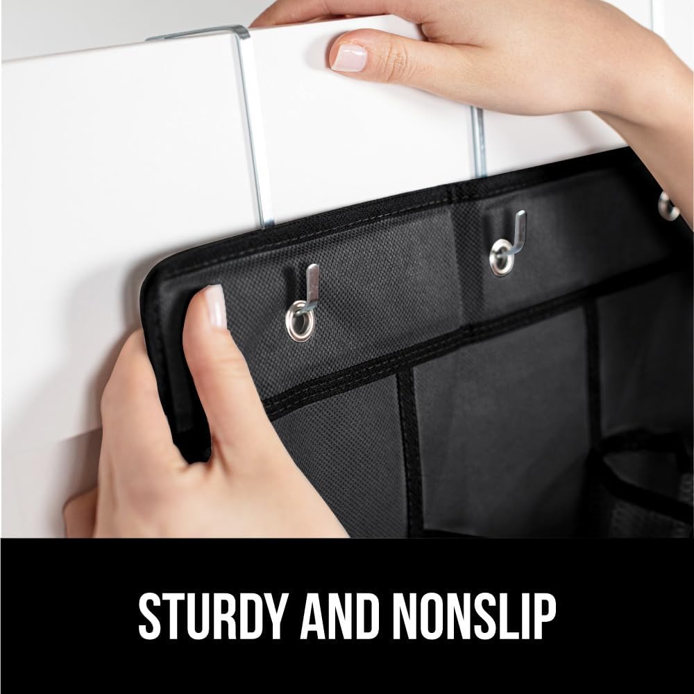 - SLIP RESISTANT DESIGN: organizer features four strong and sturdy hooks that firmly grip the top of doors and are designed to fit seamlessly over most doors