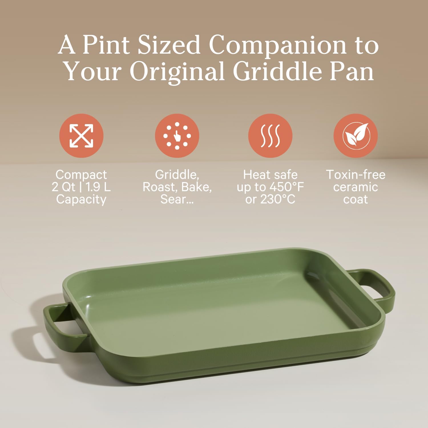 Our Place Mini Griddle Pan - 2 Quart Nonstick Ceramic Sheet Pan & Stovetop Griddle with Handles | Toxin-Free Cast Aluminum | Oven Safe up to 450°F | Sage