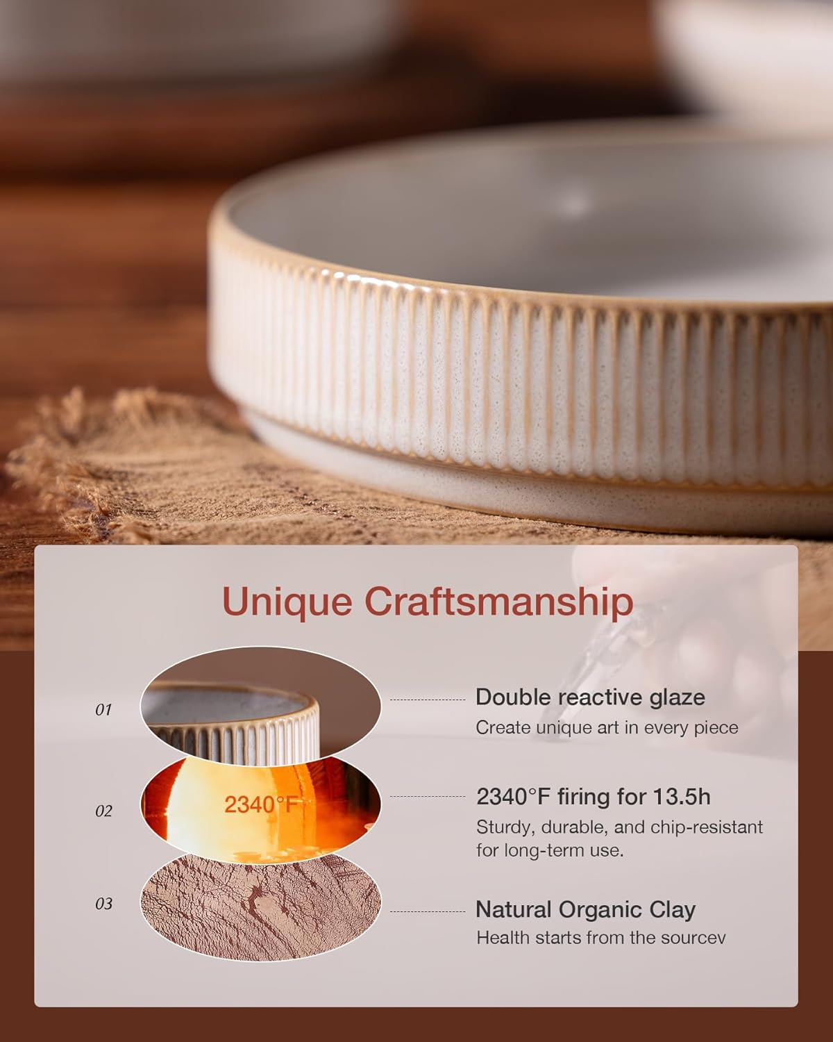 - HANDCRAFTED ELEGANCE: Each of our plate bowls is a testament to the skill and creativity of our artisans, handcrafted and glazed with a DOUBLE REACTIVE GLAZE that brings out a distinct, dreamy color. The hues may differ on your screen, showcasing the one-of-a-kind beauty of our artisanal process