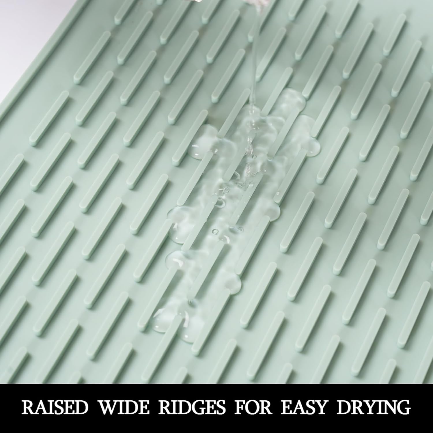 - MULTIPLE USAGE: This drying mat wide raised ridges, dry faster and water evaporates quickly. For dishes, glassware, plates, bowls, silverware, stemware, pans, spatulas, cutlery, and more on the kitchen countertop.