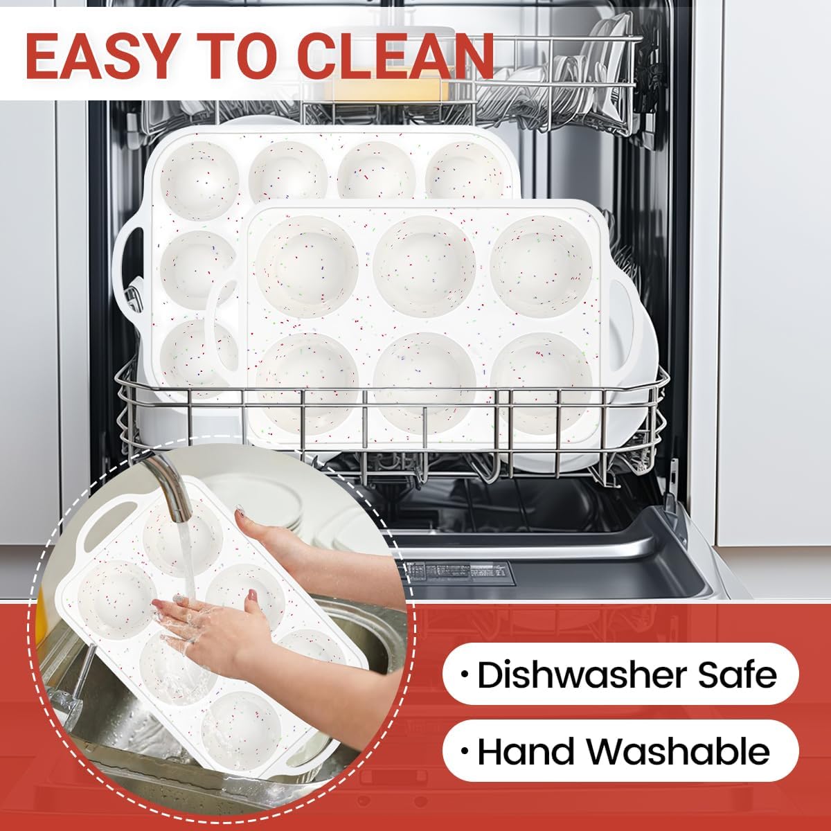 - Easy to Clean: These silicone muffin pans can withstand temperatures from -104 to 446 degrees Fahrenheit, suitable for ovens, microwaves, refrigerators and dishwashers. lt is odorless, non fading