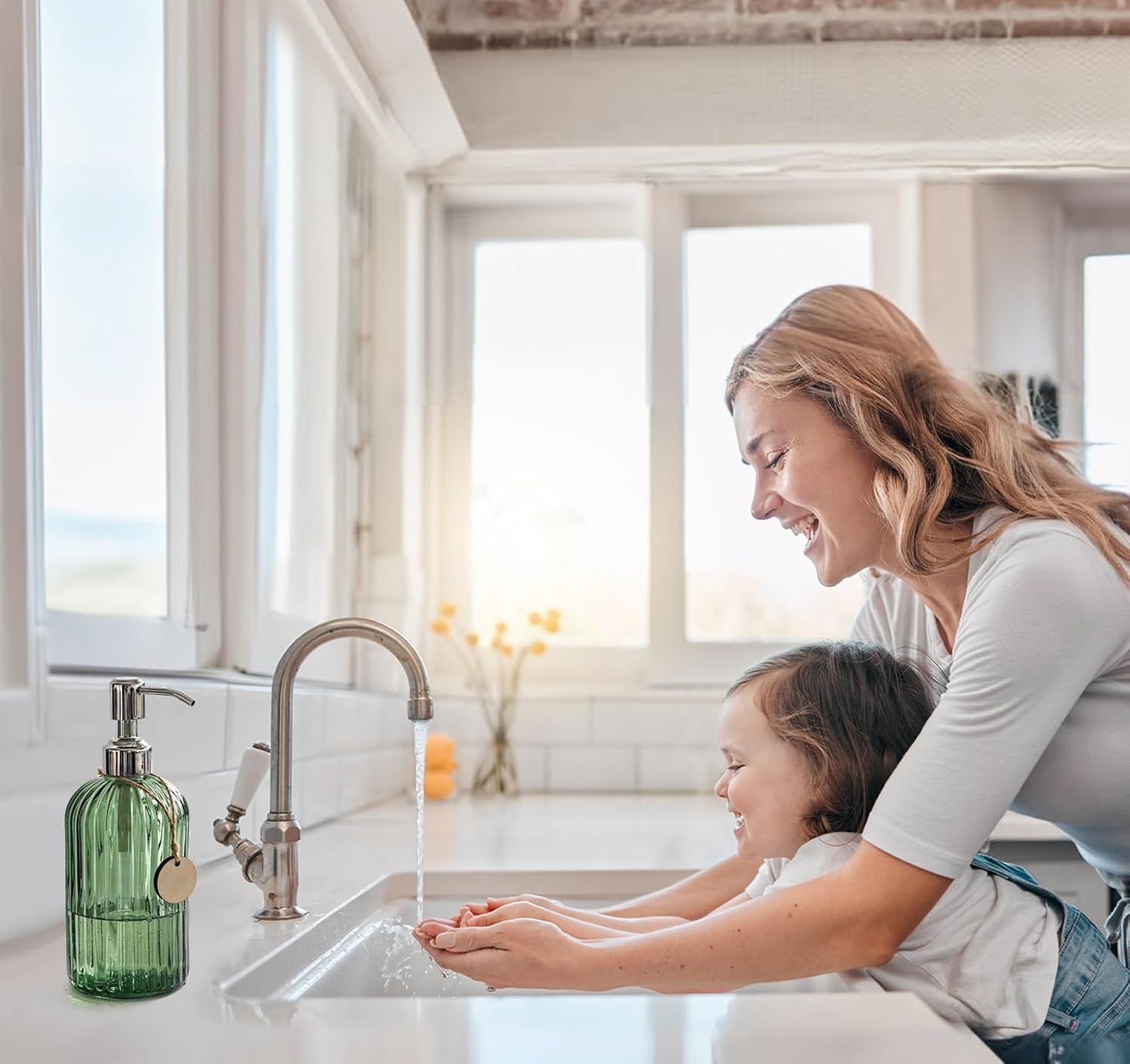 - ELEGANT SOAP DISPENSER: Stylish Green Soap Dispenser with Rustproof Pump. Ideal For Dispense Your Favorite Dish Soap, Hand Soap, Shampoo, Body Wash Smoothly.