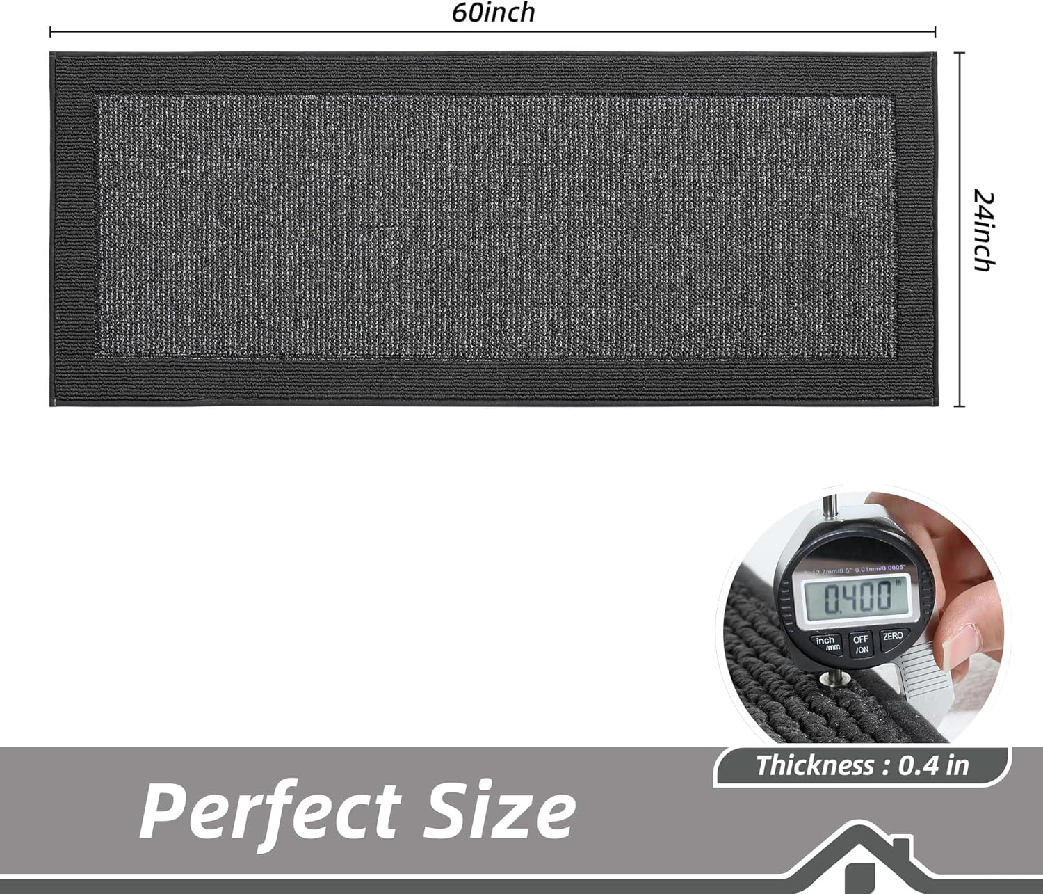 BEQHAUSE Kitchen Runner Rugs 24"x60", Kitchen Rugs Non-Slip Kitchen Mats for Floor, Absorbent and Stain Resistant Kitchen Mats, Machine Washable Rug for Kitchen, Hallway, Laundry & Sink, Charcoal