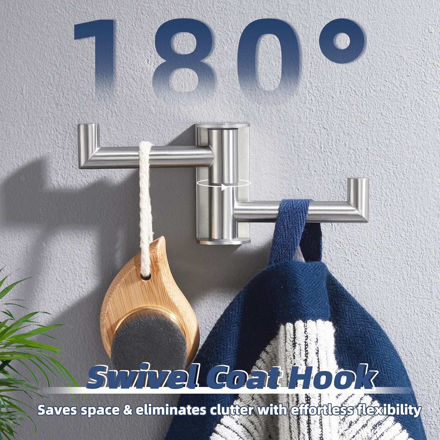 - SLEEK & MODERN AESTHETIC: brushed nickel swivel coat hook feature a minimalist shape and clean lines, designed to match common home decor. Add a touch of elegance to bathroom, shower, kitchen or closet
