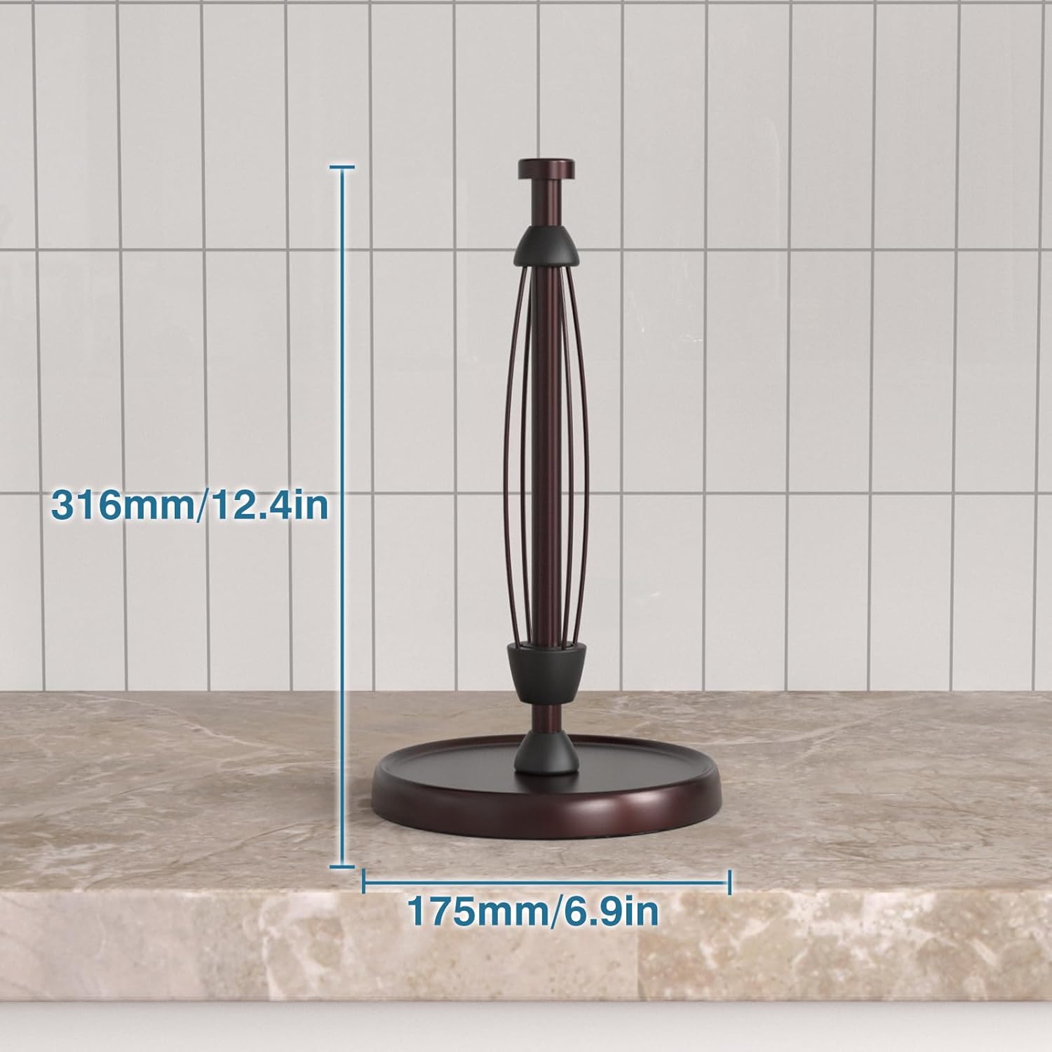 - SUIT FOR DIFFERENT SIZE OF PAPER:With an overall height of 12.64inches and a diameter of 6.7inches at the bottom. The bronze paper towel holder countertop fits most paper roll sizes on the market. Home essentials for new home!