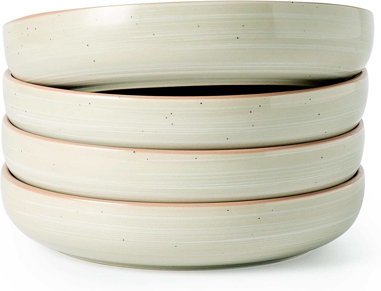 famiware Milkyway 33 oz Bowl Set, Pasta Bowls Set of 4, Salad Bowls, Double Reactive Glaze, Sturdy & Stackable, Ideal for Housewarming, Festivals, Matcha Green with Speckles