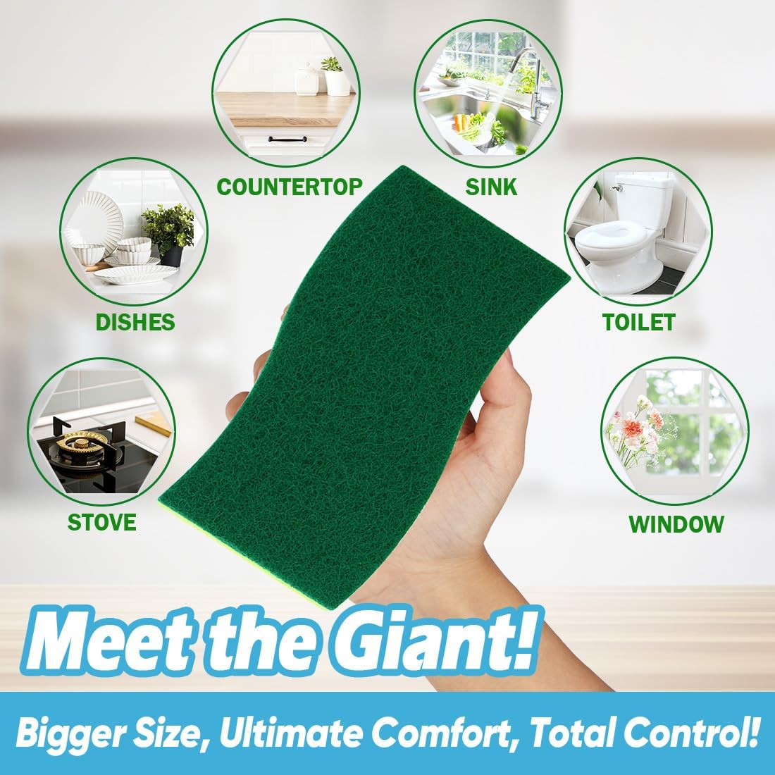 - Meet the GIANT of Clean: The cleaning BEAST; Industrial-strength scour pads DESTROY stuck-on food; Ultra-dense core LAUGHS at wear; Obliterates grime in seconds - bigger, tougher, and unstoppable!