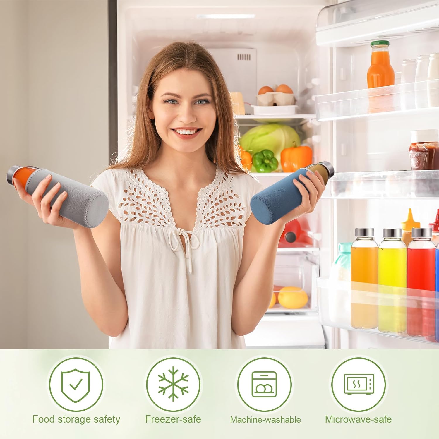 - Multipurpose Use: our 18oz glass juice bottles with sleeves and stainless steel lids are versatile for various applications, from storing hot or cold drinks, still or carbonated drinks, leftover drinks to crafting sand art crafts, this bottle is a good fit for all