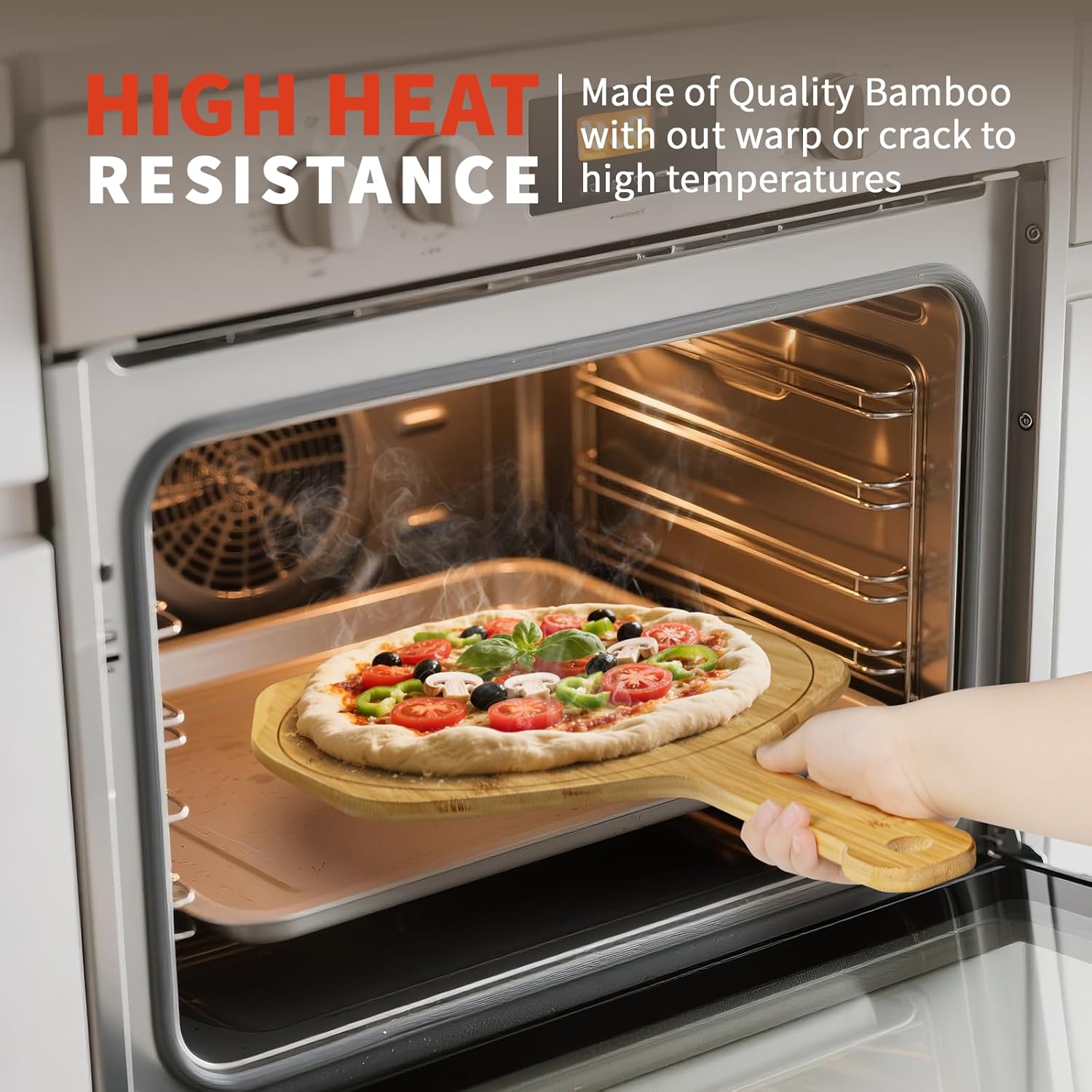 - 【Premium Natural Bamboo Pizza Peel】Crafted from premium, eco-friendly bamboo, this lightweight yet sturdy pizza peel is gentle on pizza stones and pans. Its smooth wooden surface helps prevent raw dough from sticking, making it perfect for effortlessly transferring pizzas or bread. With fine craftsmanship and a natural finish, it's both a practical tool and a beautiful addition to any kitchen.