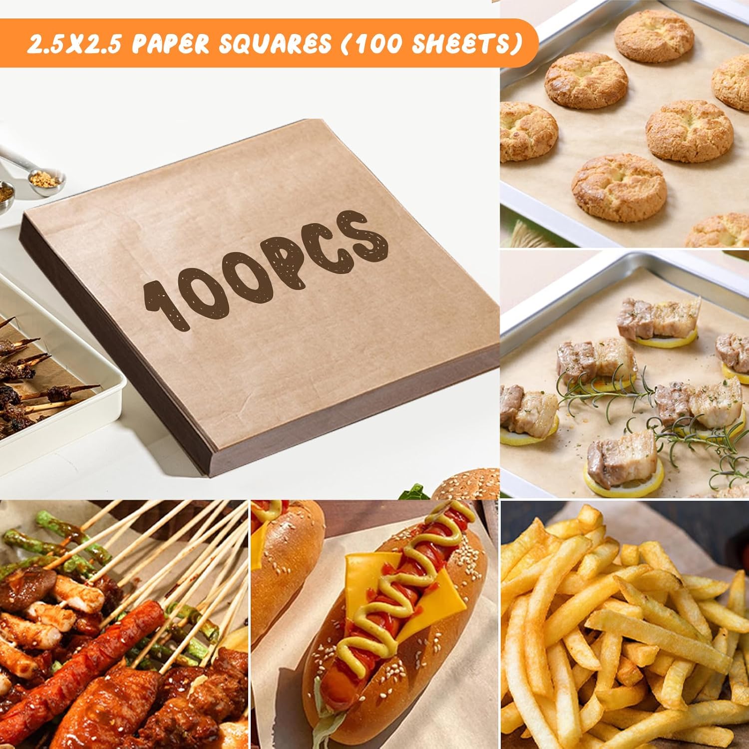 - Includes 100 Premium Baking Papers: 4-inch (10cm) square parchment papers prevent food adhesion and grease mess for hassle-free clean up