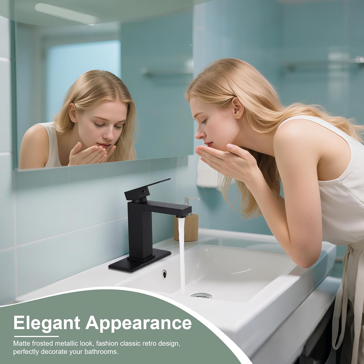 - Zero Fingerprint Matte Finish: Our matte black bathroom faucet is crafted using advanced technology to produce a beautiful, long-lasting finish that won't tarnish or show fingerprints. Wipe clean with one touch – no more daily polishing to maintain that sleek, showroom look