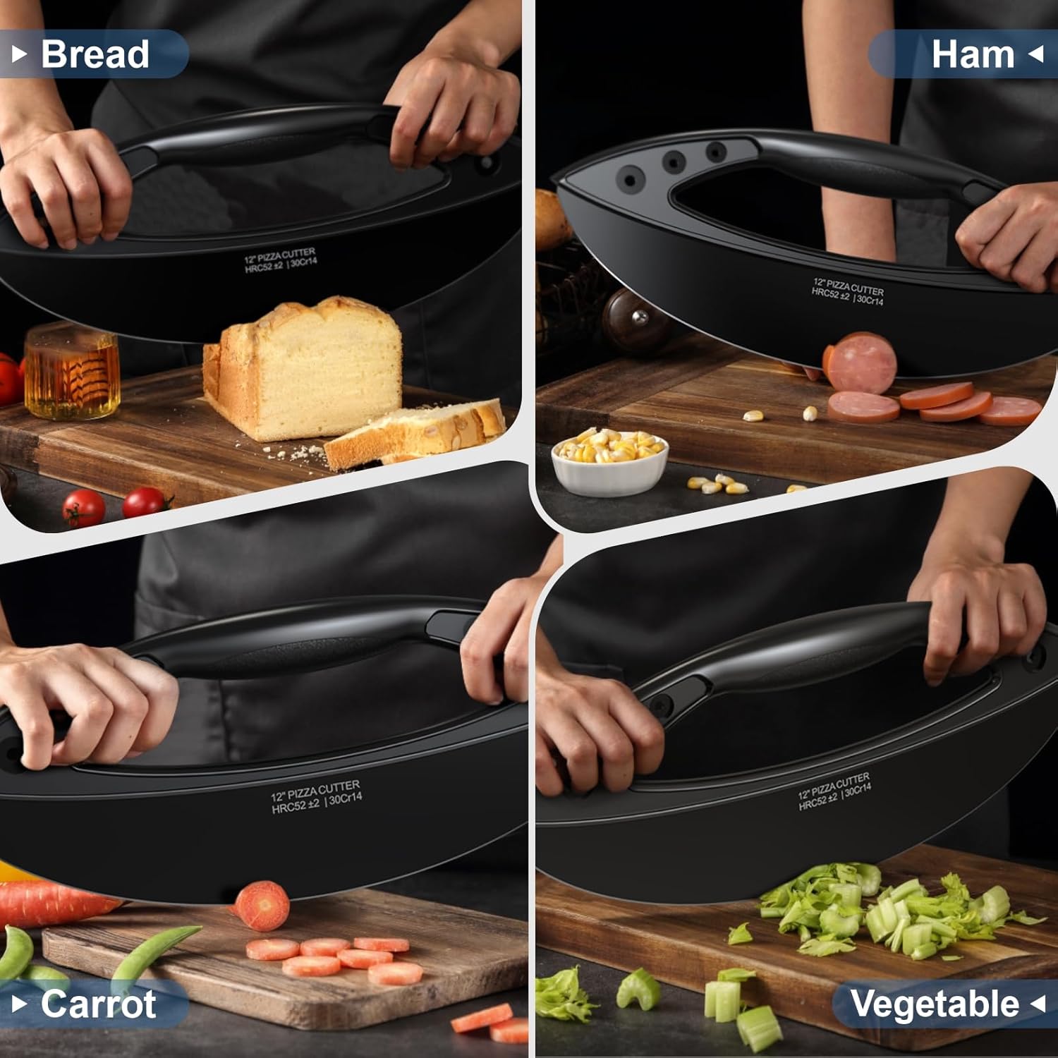- 【PREMIUM DESIGN】12-inch stainless steel blade with ergonomic black handle provides superior cutting power and control for large pizzas.