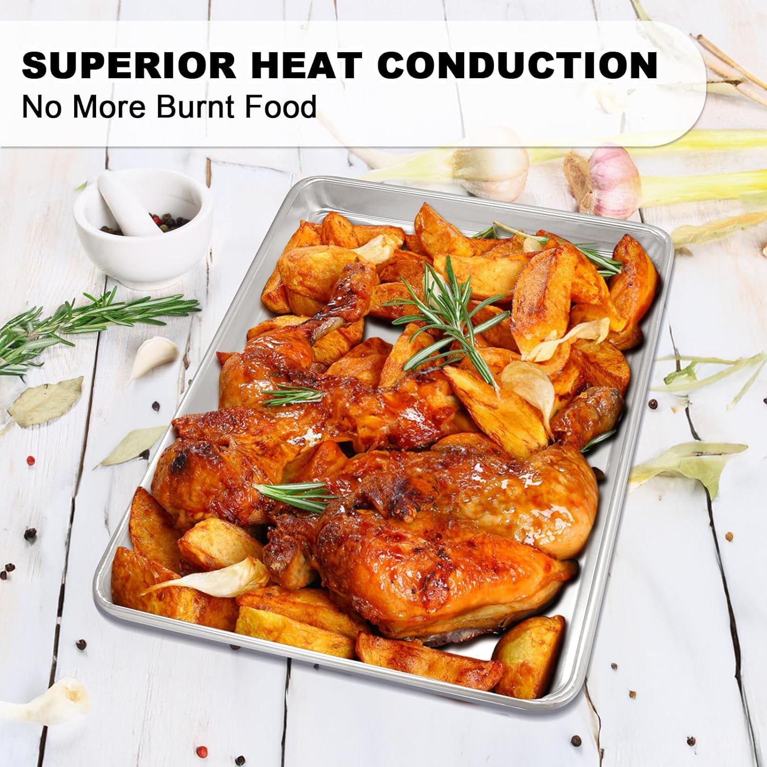 - Mirror Finish Design: These cookie sheets' surfaces are high mirrors polished to reduce the risk of food sticking together. smooth curvy edges make it very comfortable to hold and protect your hands. You can make grilled meat, spatchcock turkey, crispy bacon, chicken wings, bbq ribs, baked potatoes just to name a few.