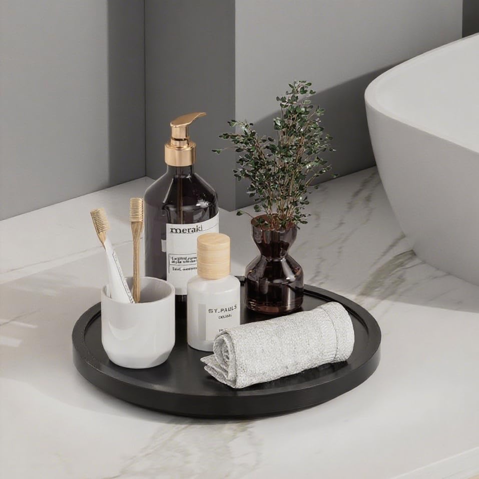 LAMU 9'' Wood Lazy Susan Organizer Turntable for Cabinet, Lazy Susan for Table Top, Pantry, Kitchen, Bathroom, Countertop, Rotating Spice Organizer, Vanity Decor Tray, Pine Wood, Black