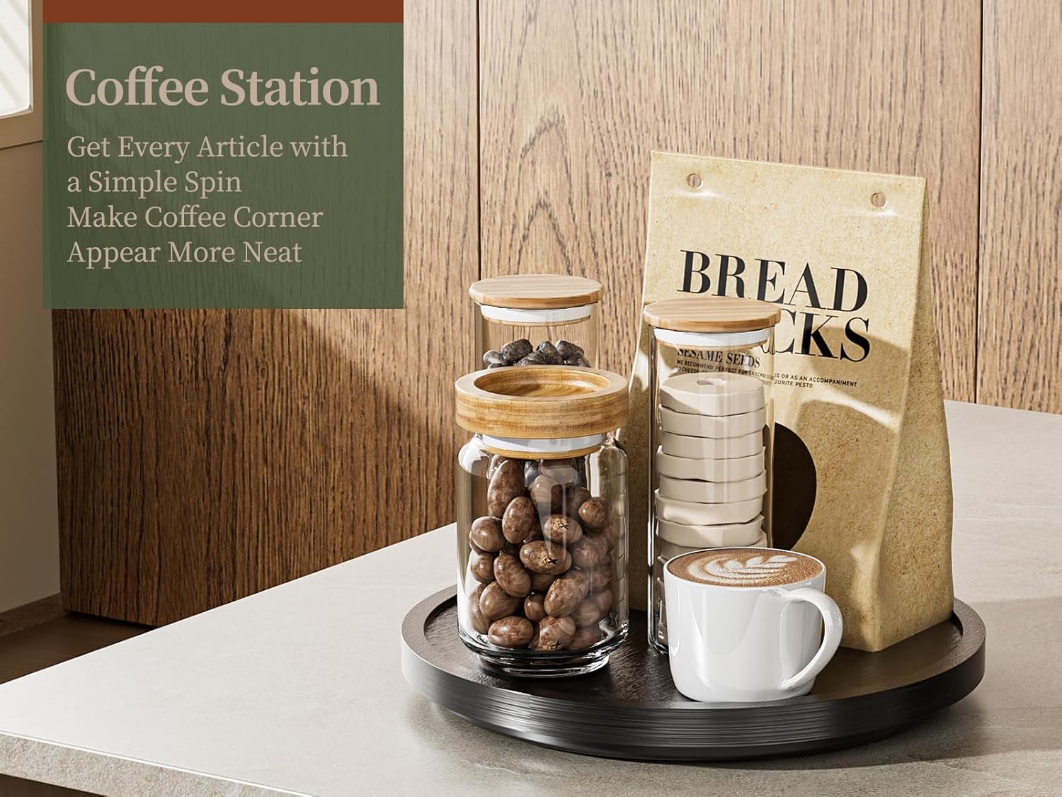 - Multi-Room Versatility: This Lazy Susan Organizer design for everywhere your home: Use as a Lazy Susan Organizer for Cabinet kitchen pantry, bathroom counter tray, coffee bar table centerpiece, or living room display decor tray