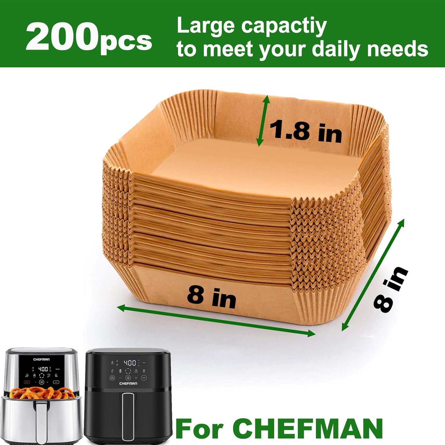 Air Fryer Paper Liners for Chefman 6 QT Compact, 200Pcs 6qt Air Fryer Liners, 8 quart Air Fryer Liners, Parchment Paper Liner for Chefman TurboFry 8-Qt Stainless Steel