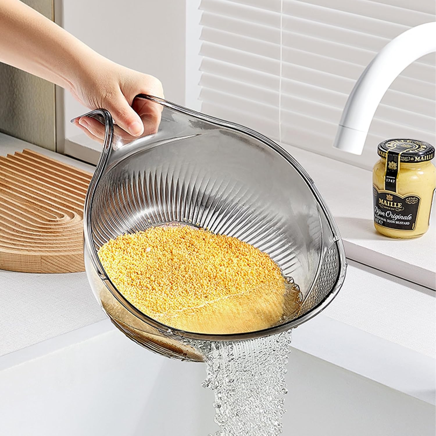 2-In-1 Rice Strainer,Large Rice Washer Beans Washer Strainers And Colanders - Washing Bowl for Fruit Washing Bowl With Strainer,Rice Washing Bowl Multifunctional Drain Basket (Gray)