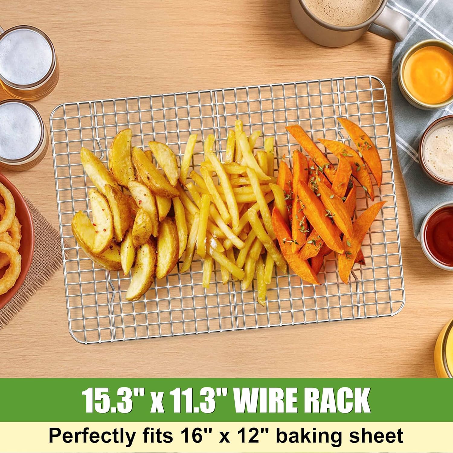 - Unique grid design, the wire cookie cooling racks featured 3/4" raised feet to increase air flow for evenly baking and cooling, excess fat will drip away so you will get crispier and healthier food, and 1/2" small grids spacing prevents baked foods from slipping