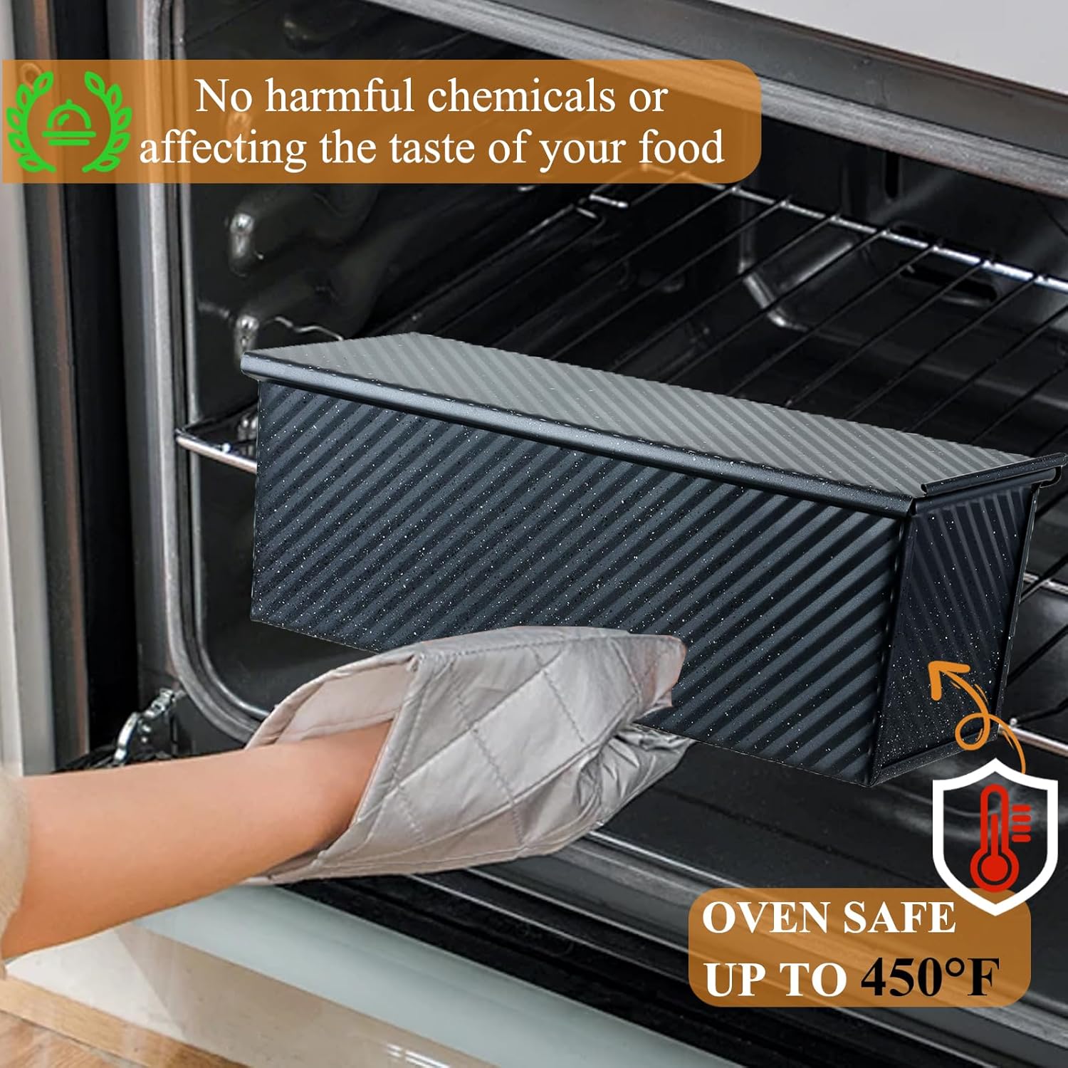 - PREMIUM NONSTCK & EASY CLEAN: Enhanced food-safe PTFE/PFOA-free nonstick coating ensures effortless bread release from bread pan with lid. It is perfect for baking sandwich bread, Japanese milk bread, gluten-free loaves, sourdough, and more.