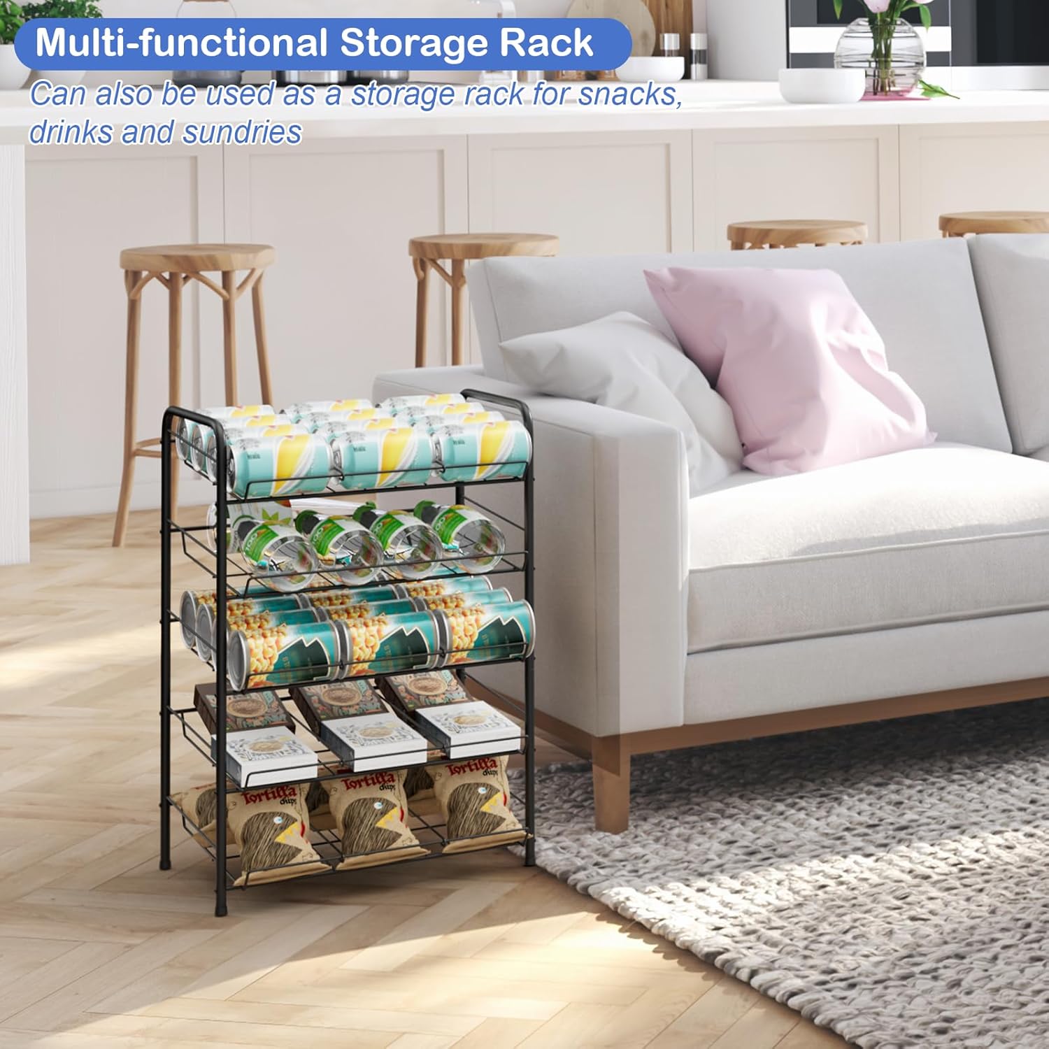 - 【5 Tier Can Organizer】This can storage organizer pantry can hold up to 60 variety-size cans/jars(Each tier can store up to 12 cans), which is a reliable can organizer for the pantry shelf, kitchen cabinet, and countertop.