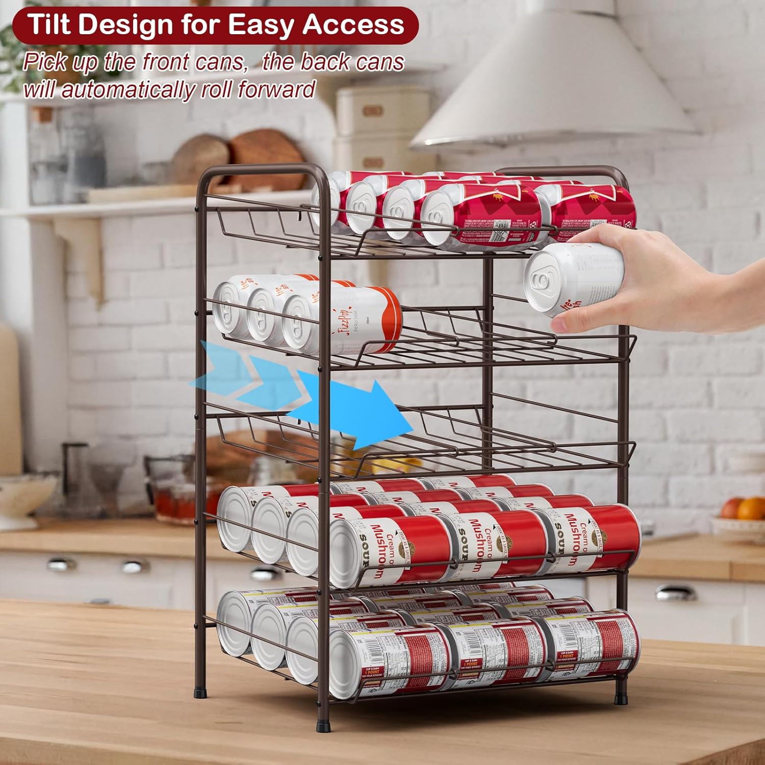 - 【5 Tier Can Organizer】This pantry can organizer can hold up to 60 variety-size cans/jars(Each tier can store up to 12 cans), which is a reliable can organizer for the pantry shelf, kitchen cabinet, and countertop.