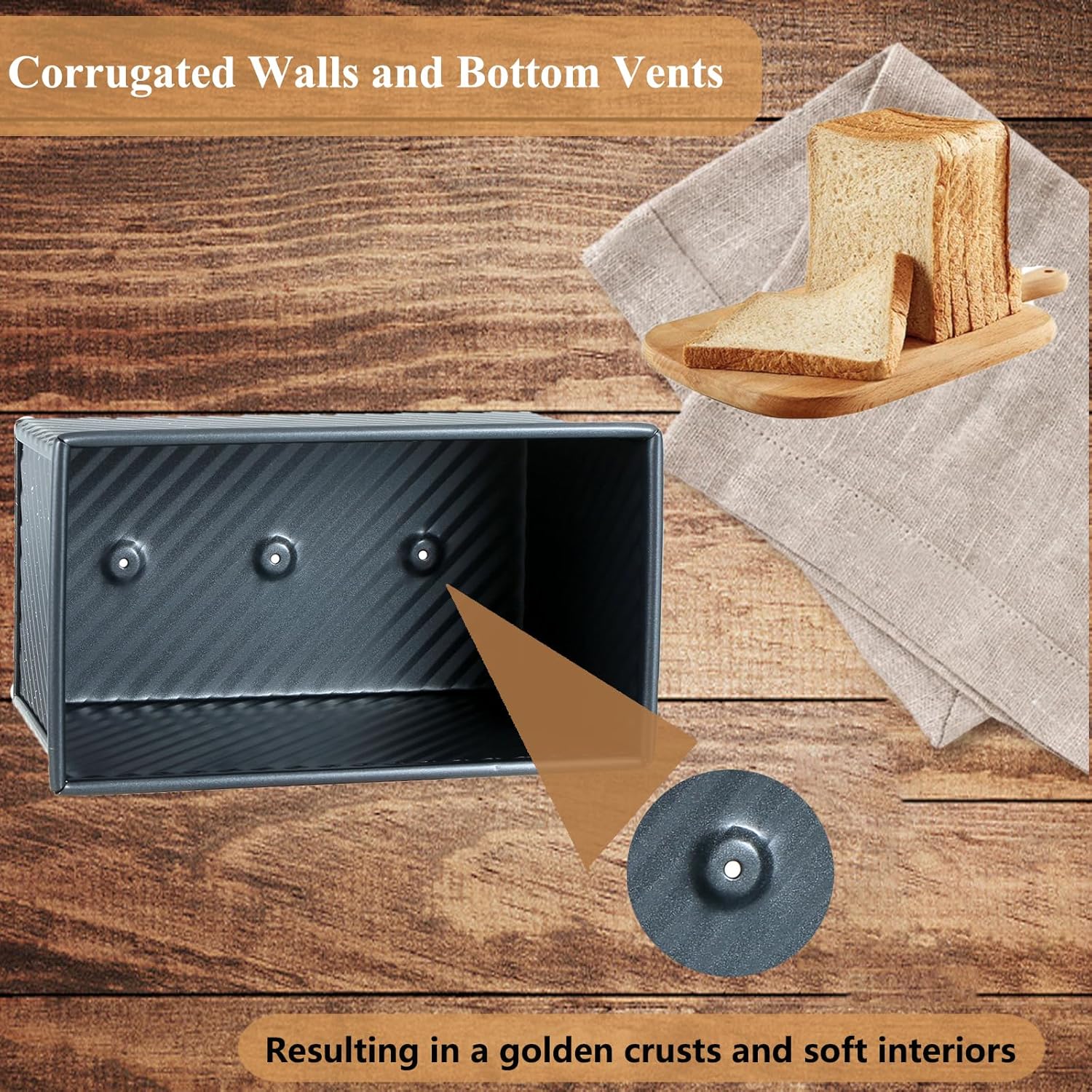 - PROFESSIONAL-GRADE CARBON STEEL CONSTUCTION: Crafted with thickened carbon steel, our bread loaf pan withstands 450°F/232°C for commercial-level baking. The corrugated design enhances heat distribution by 30% vs regular pans. Ideal for sourdough loaf pan use, its reinforced edges prevent warping even with dense dough.