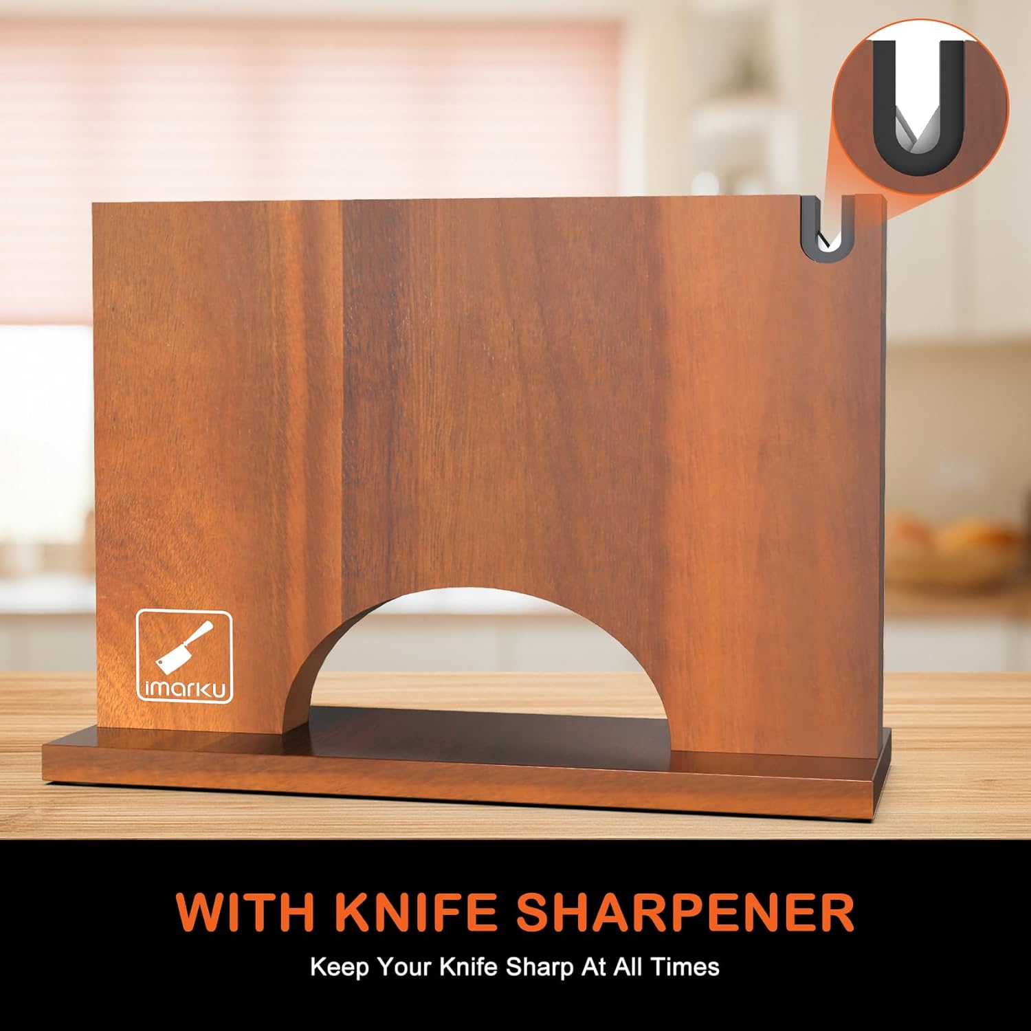 Magnetic Knife Block, Magnetic Knife Holder with Double Sided Magnetic Design, 12×10 Inches Knife Stand with Knife Sharpener, Acacia Wood Knife Storage for Kitchen Counter