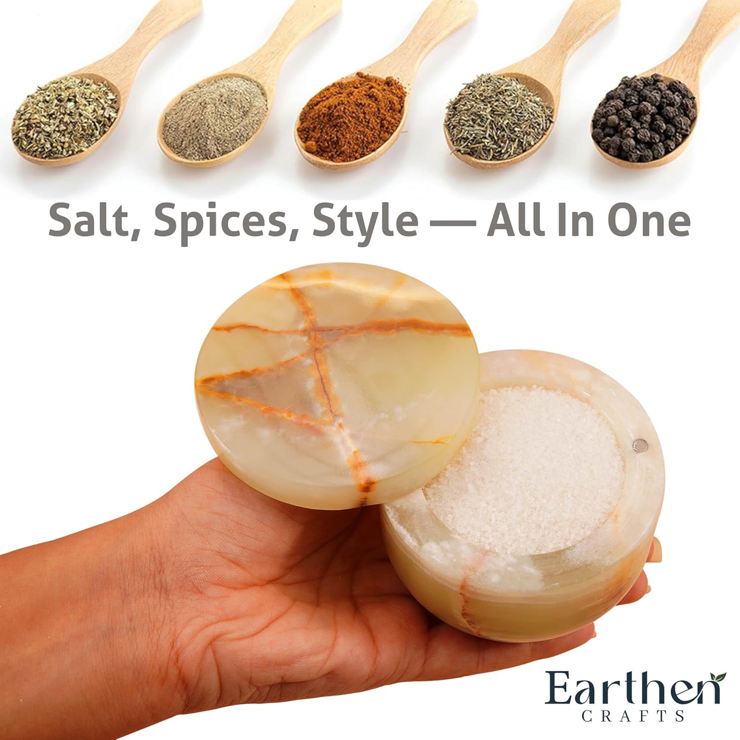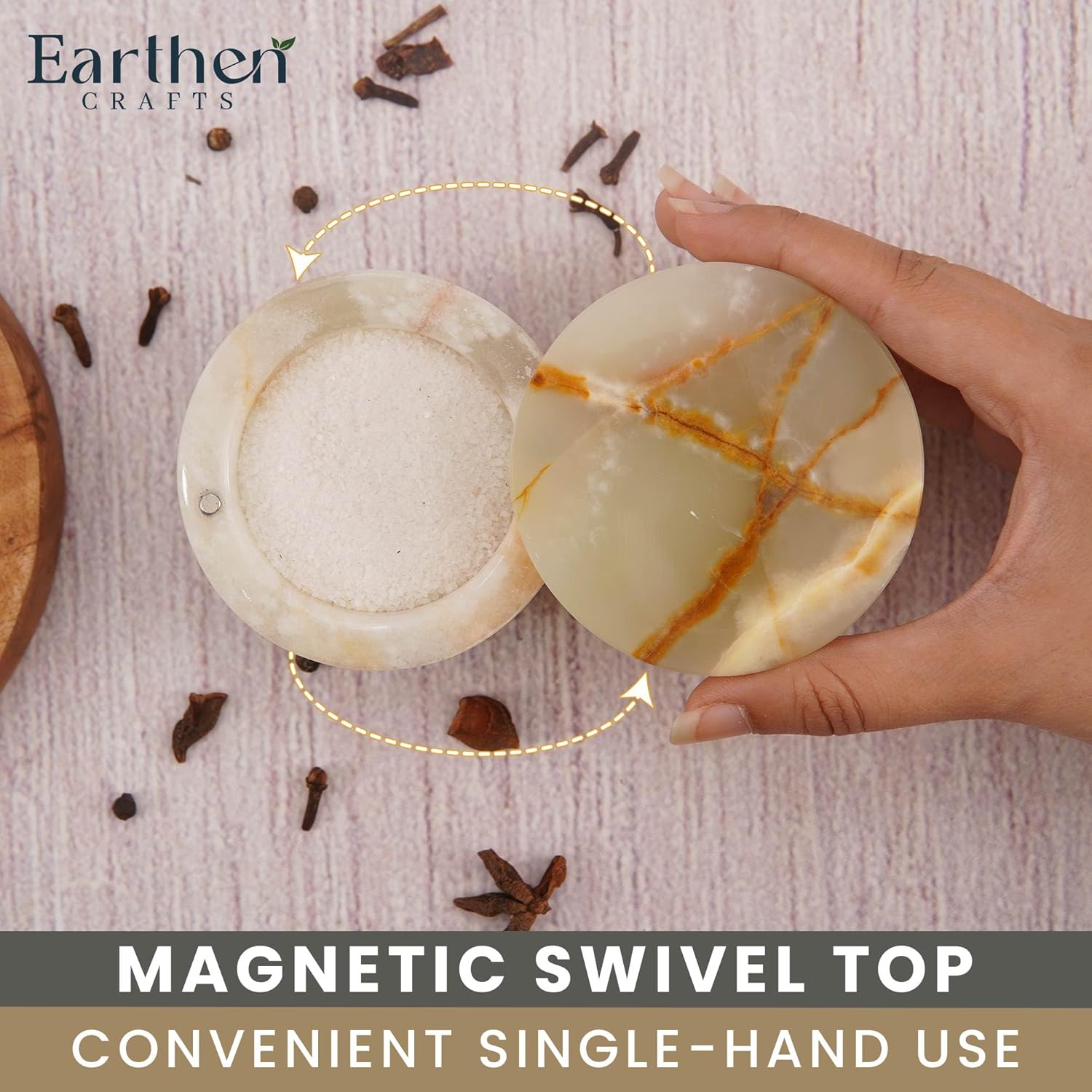 - What is Included: 1 x marble salt cellar with swivel magnetic closure lid comes along with Earthen crafts branded secure and fragile packaging.